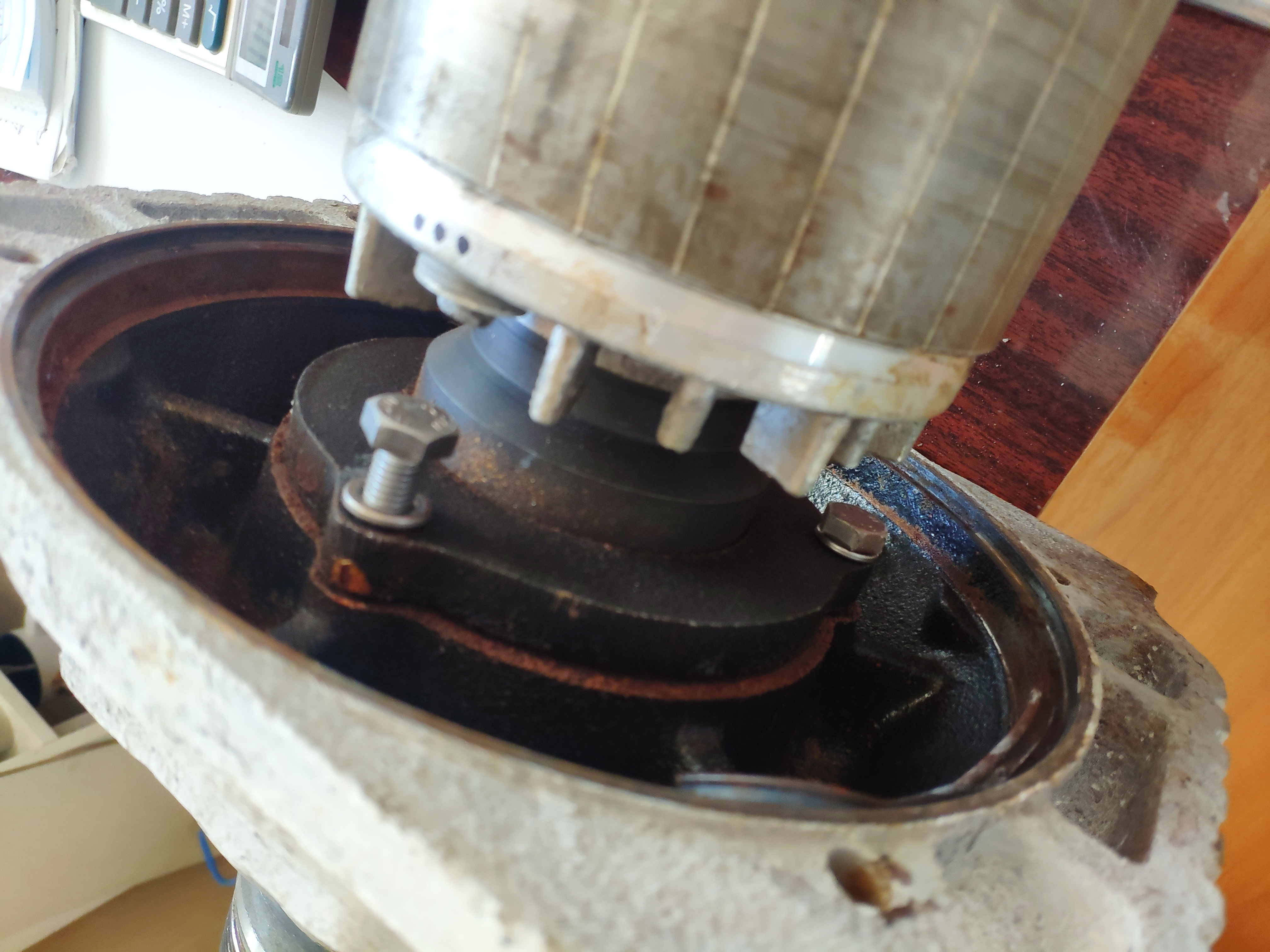 Купили камнерезный станок, через время начался шум от подшипника. Полез разбирать. Вытащил переднюю крышку с валом и ротором. Как теперь живу эту крышку снять для доступа к подшипнику? Буду благодарен за советы.
