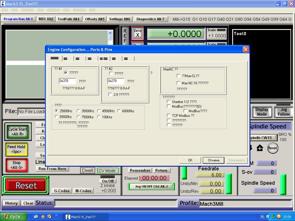 Очень долго боремся с настройками данного станка. Причём всё время работа станка менялась. Много раз меняли настройки Mach3, устанавливали как демо версию, так и другие версии. Изучали форумы и инструкцию к Mach. На данный момент стоит версия присланная вместе со станком.