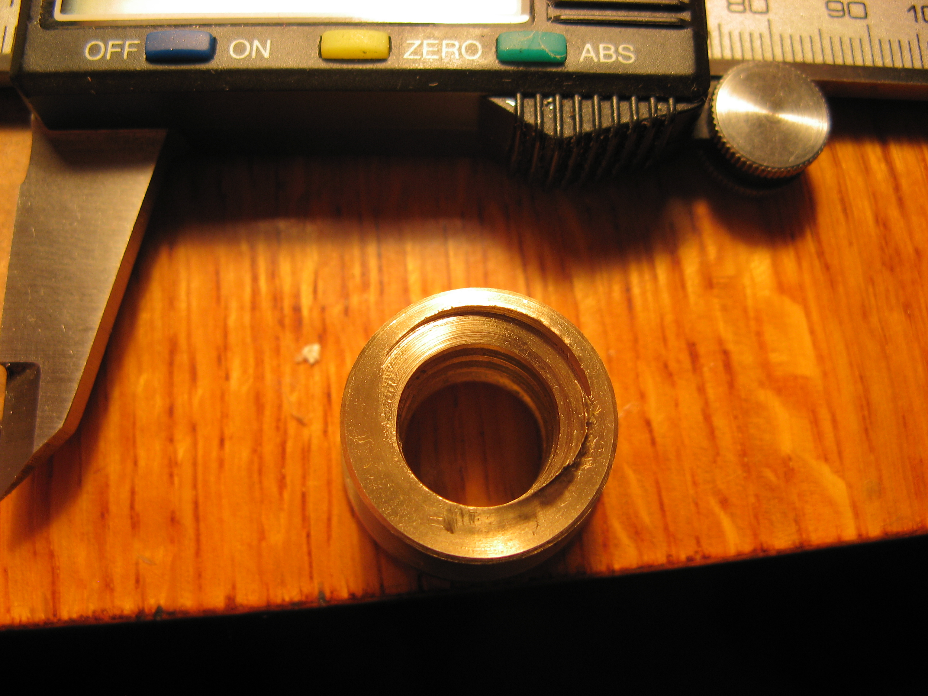 теперь про одну из самых интересных деталей - бронзовую гайку. для начала видио работы солдатика - заднего резцедержателя. сильно облегчает жизнь в плане точности получаемых деталей. в данном случае точилась заготовка для гайки и отрезалась резцом, расположенным в солдатике.