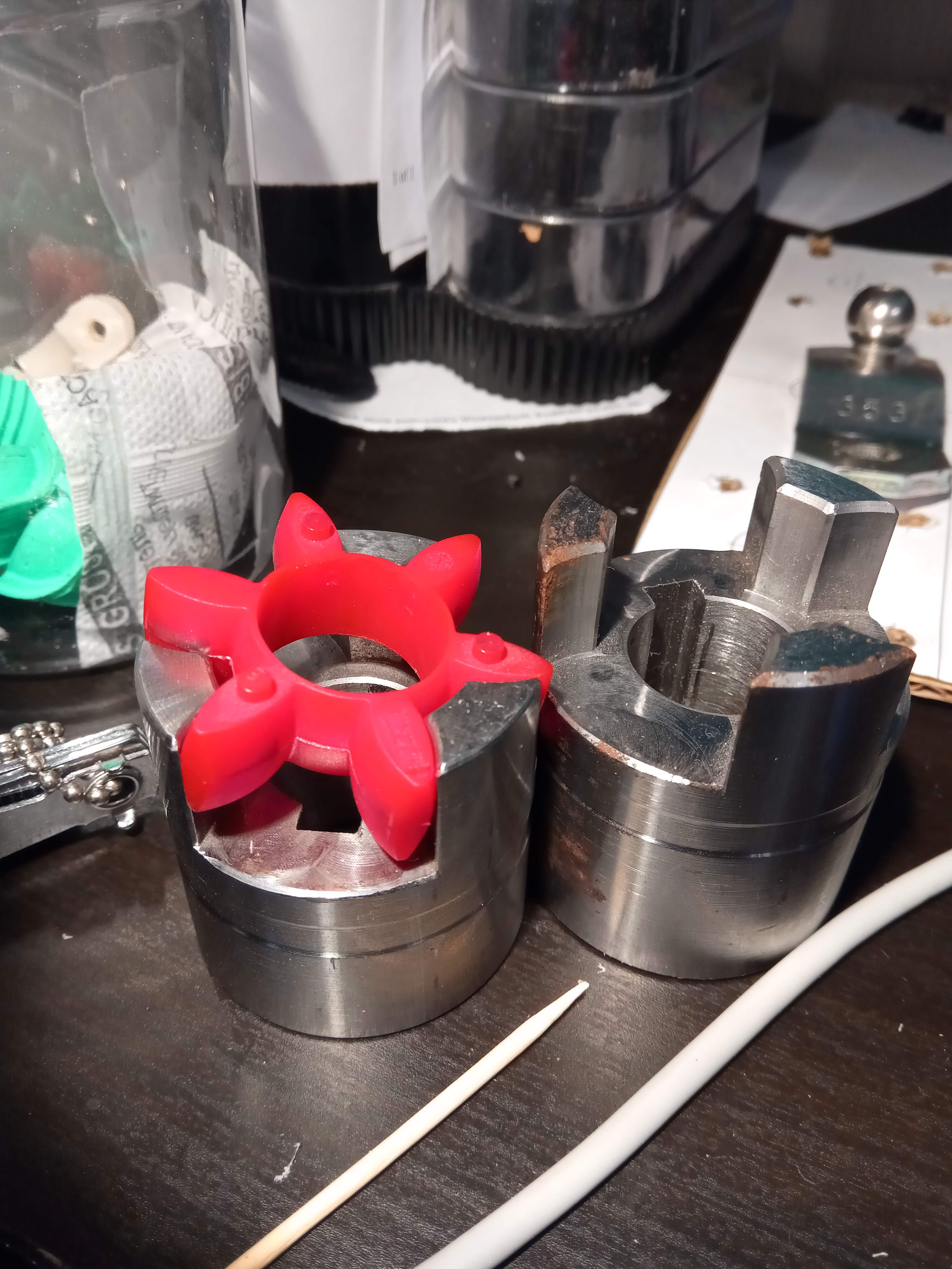 Муфтой могу обменяться если что... У меня есть муфта 19х19 кулачковая, трёхзубная, стальная со шлицами - не использовалась практически.