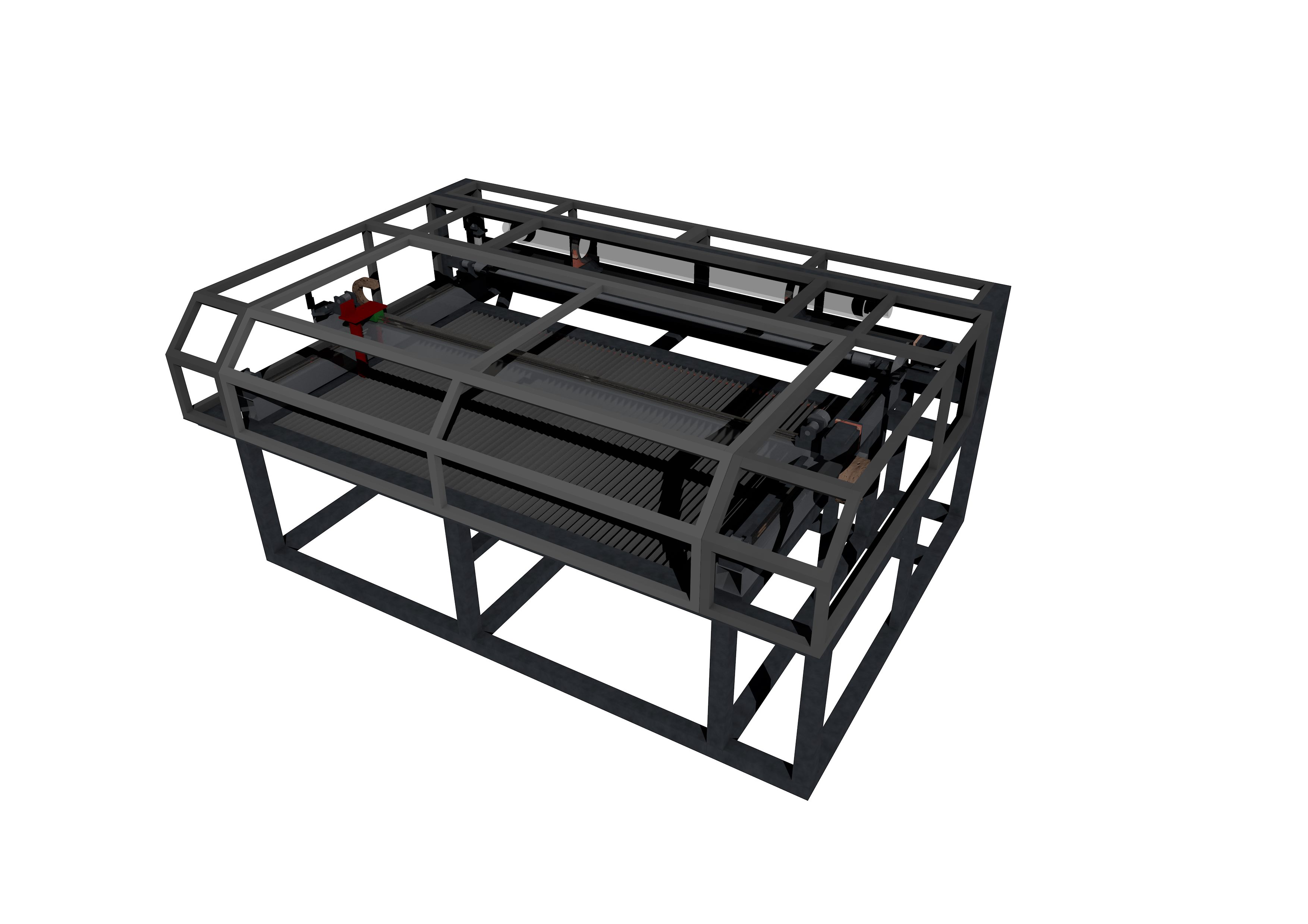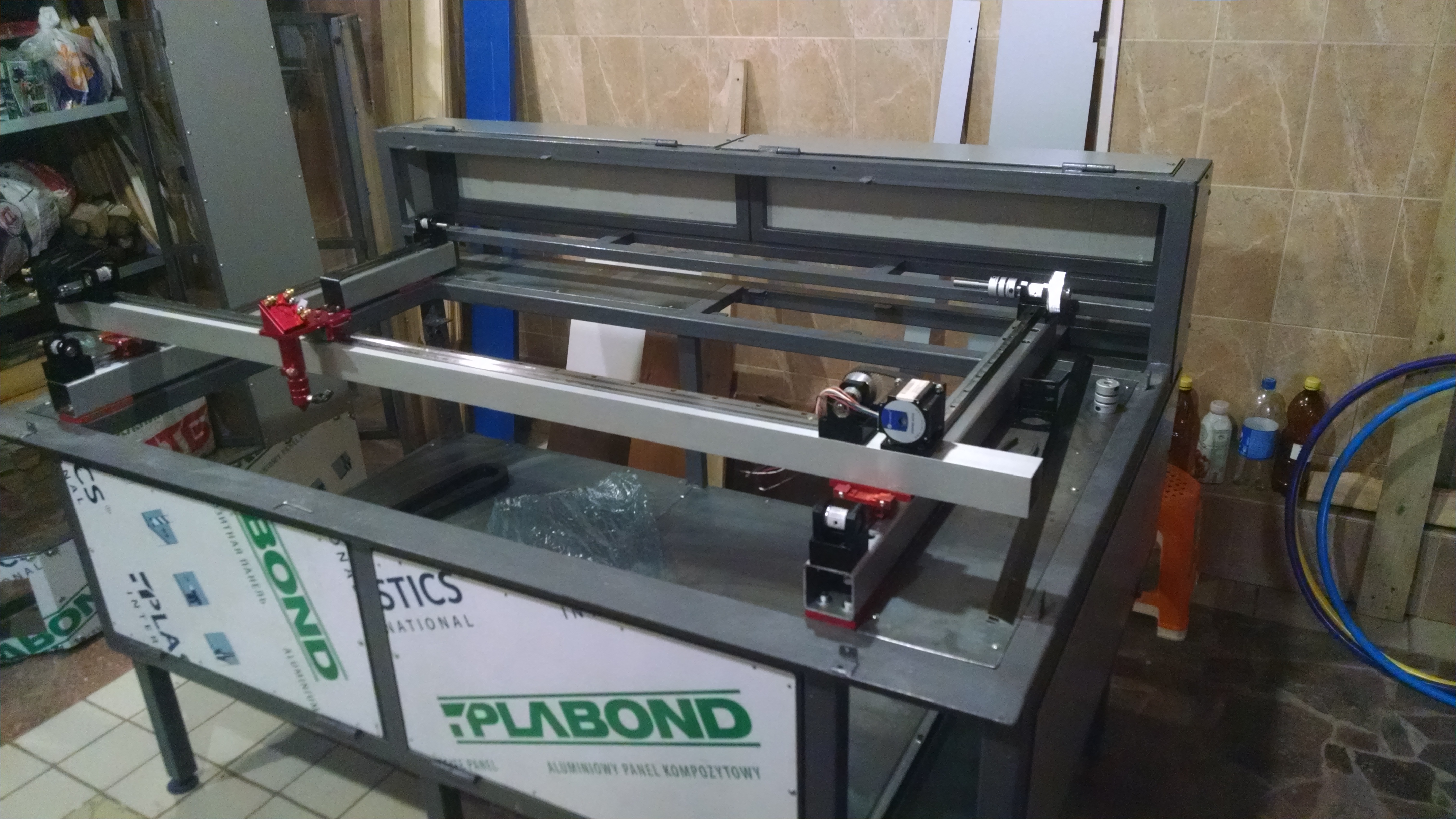 Рабочее поле - сначала планировал 900х600, но аптетит приходит во время еды, и из-за габаритов лазерной трубы, поле выросло до 1250х750 с возможностью протяжки листовых материалов.