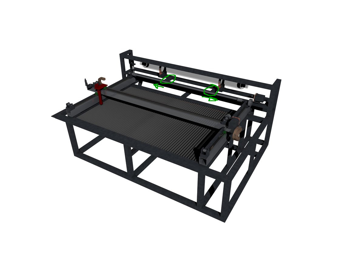 длинную поперечную трубу посередине между ног я б убрал - не то чтобы там нужна была особенная жесткость, зато она будет мешать в случае надобности сунуть туда чего-то габаритное (со снятыми ламелями) для гравировки.