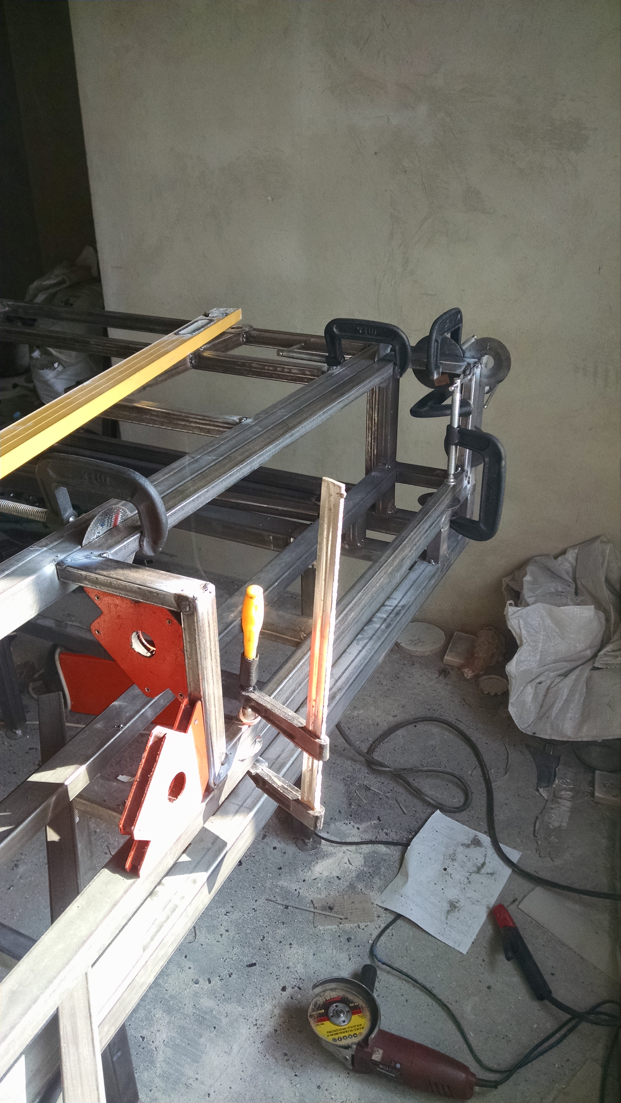 Рама - стальная профильная труба 40х40х2 (дешевле и к тому же я решил освоить профессию сварщика).