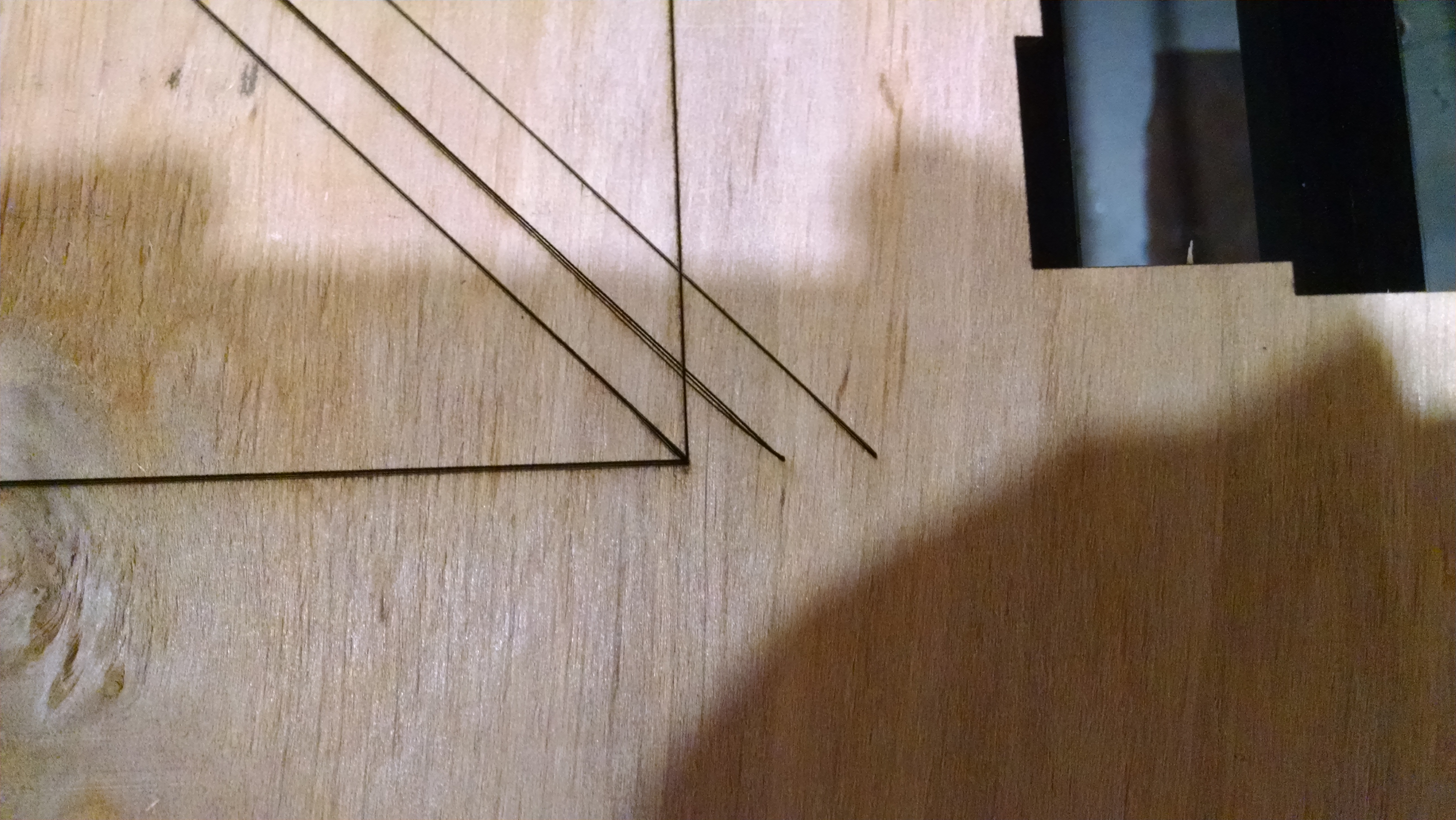 3. При резке диагональных линий в начале появляется дуга, размер которой зависит от скорости. И смещаются координаты по Y, если головка несколько раз перемещался в этом направлении. Думаю дело в слабо натянутом ремни между мотором и приводным шкивом оси Y. Если мотор стоит на содержании и рукой крутить шкив вправо-влево, ощущается люфт.