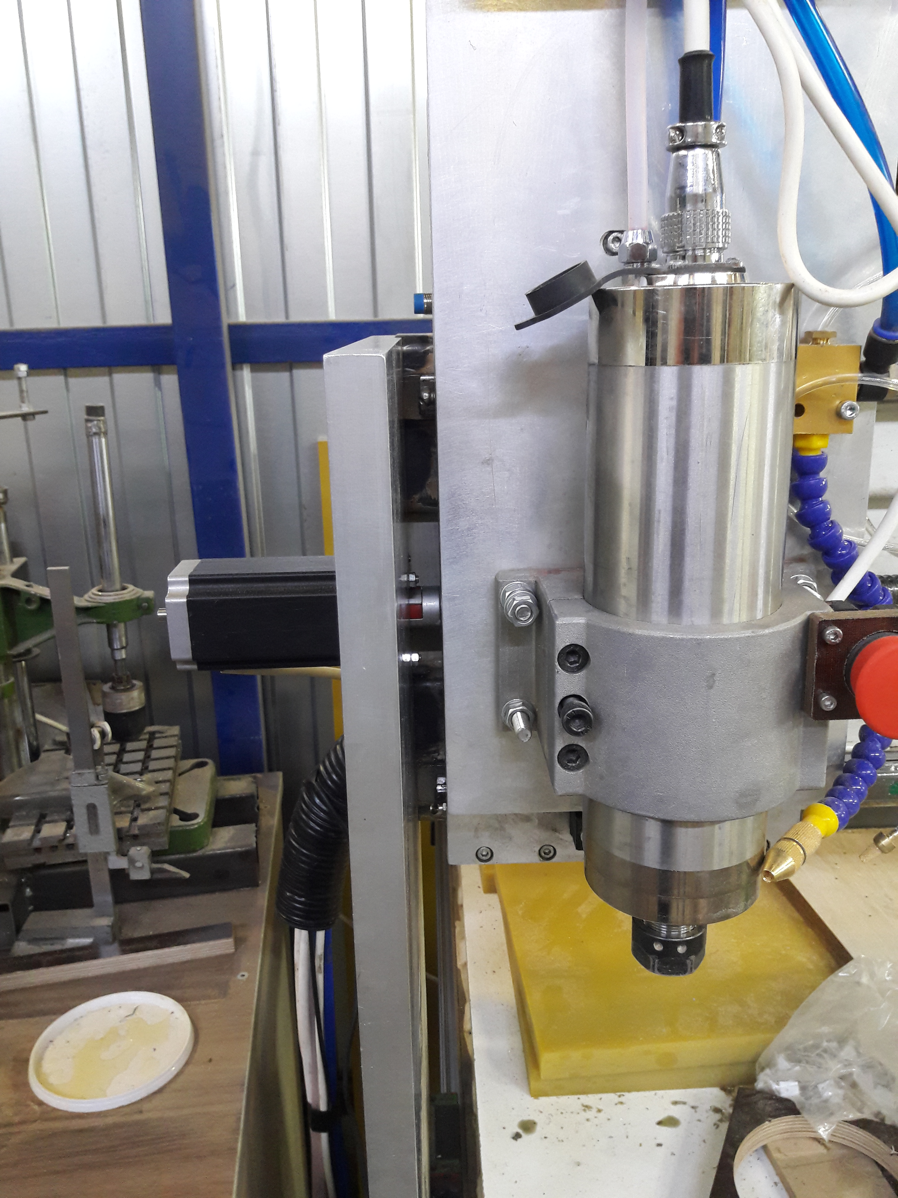 Разделил с сыном заказ на али на 2 части во избежании таможни и через месяц получил всё .Драйвера прислали не те ,но вернули деньги и стоимость обратной пересылки без проблем и быстро . Конечно же я проектировал основу не правильно ,по канонам Форума ! Я дорисовал железо к имеющимся комплектующим .Станину и балку портала ,а так же плиты "зетки" и опор портала ,мне изготовили в подарок на ДР (так бывает) .Подстолье варил сам и вся остальная сборка и фрезеровка моих рук дело !Так что самоделка или нет вопрос спорный .Стеклотекстолит на стол ...ну короче был .И так шпиндель 2.2 KW , шаговики NEMA 23 112 мм 3А вал 8 ,на "зетку" пришлось докупить 85 мм шаговик ибо длинный не влезал,20е направляющие 1400 (У) 1100(Х) 400(Z) ШВП1605 по кругу .Предусмотрена установка направляющих 1400 мм на ось Х и ШВП 2005 на всю длину ,посадочное под мотор пока работает дыркой для провода.Компоновка обусловлена тем ,что при случае придётся выносить через дверь по частям .Пока не нашёл своего места ездит на колёсах ,ускорения поэтому пока минимальные.Меня пока всё не только устраивает ,но и восхищает! Руками мне такого не сделать ни в жизнь !