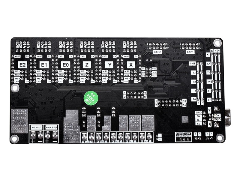 отличается от RAMPS 1,4 да не чем. На борту все тот же Mega 2560 и все расположено на одной плате . + 6 разъемов для шагового двигателя возможность установки драйверов под них. Наличие силовых ключей под исполнительные элементы. В качестве управление осями ХУ Снятие защитной пленки применил контроллер DM542 3шт. ОсьZ вращение головок Е0Е1 остановился на DRV8825