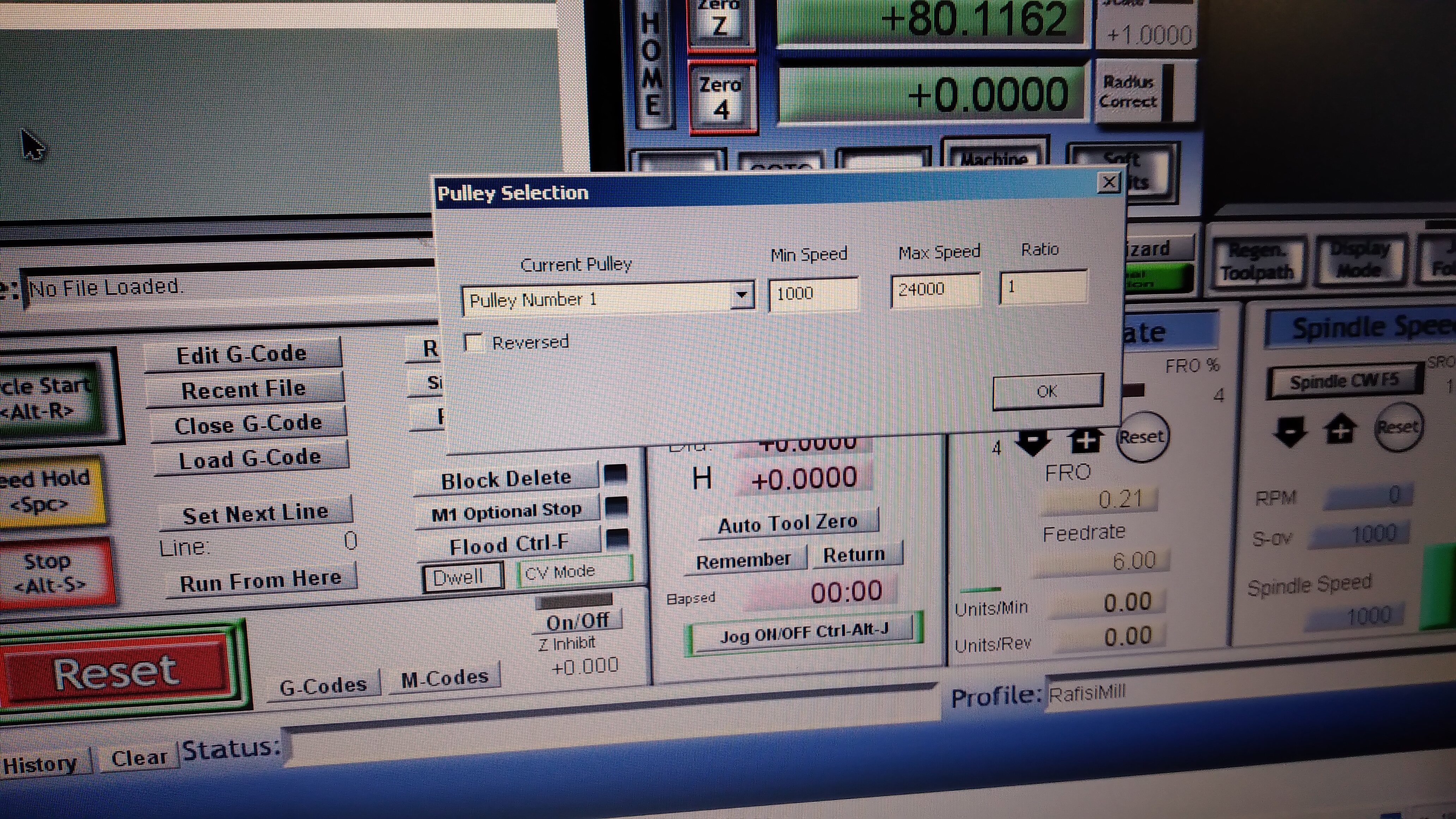 Ещё заметил что при включеном шпинделе начинаю сдавать назад по (X) и обороты шпинделя падают.