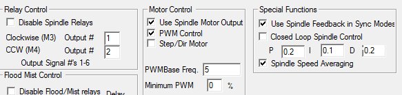 В общем потыркал настройки матча,всё заработало,регулеровка оборотов работает,но не сходится с реальными оборотами и обороты постоянно скачут,отключается шпиндель при движении назад по оси X.