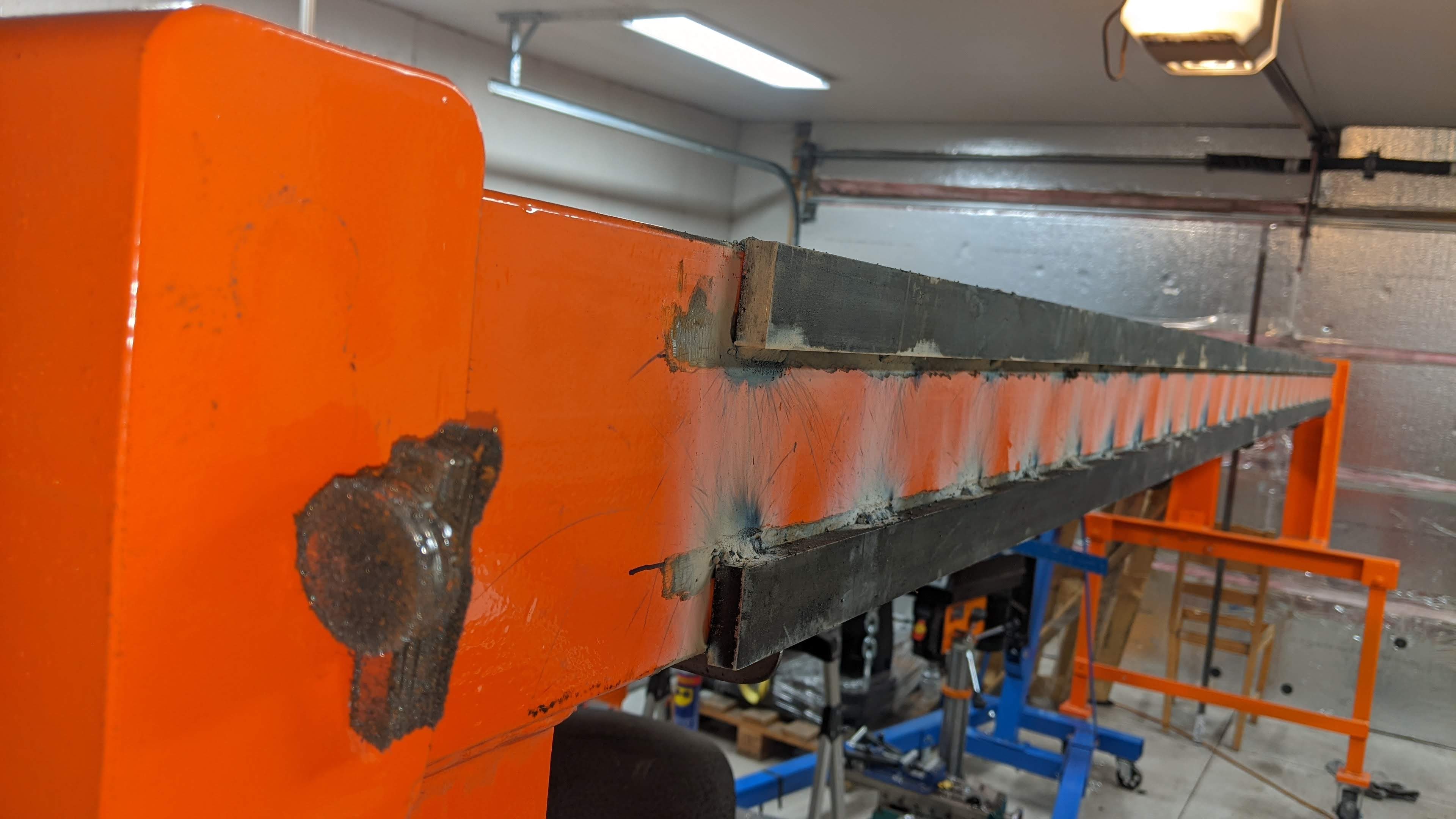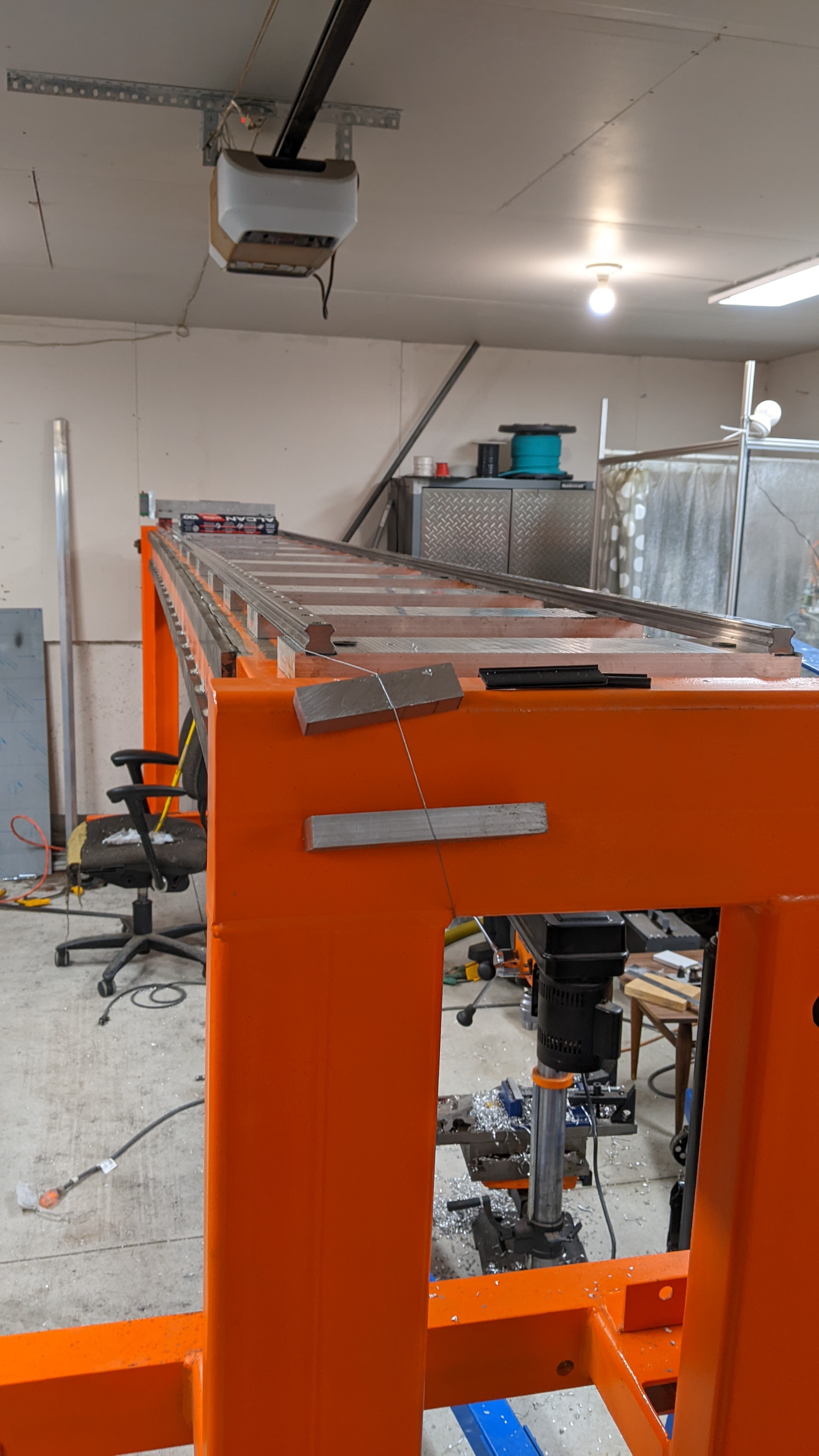 В общем приварил я проставки под рельсовые направляющие, ну и как ожидалось все усилия по выставлению каждой полосы перед сваркой были нарушены после сварки.