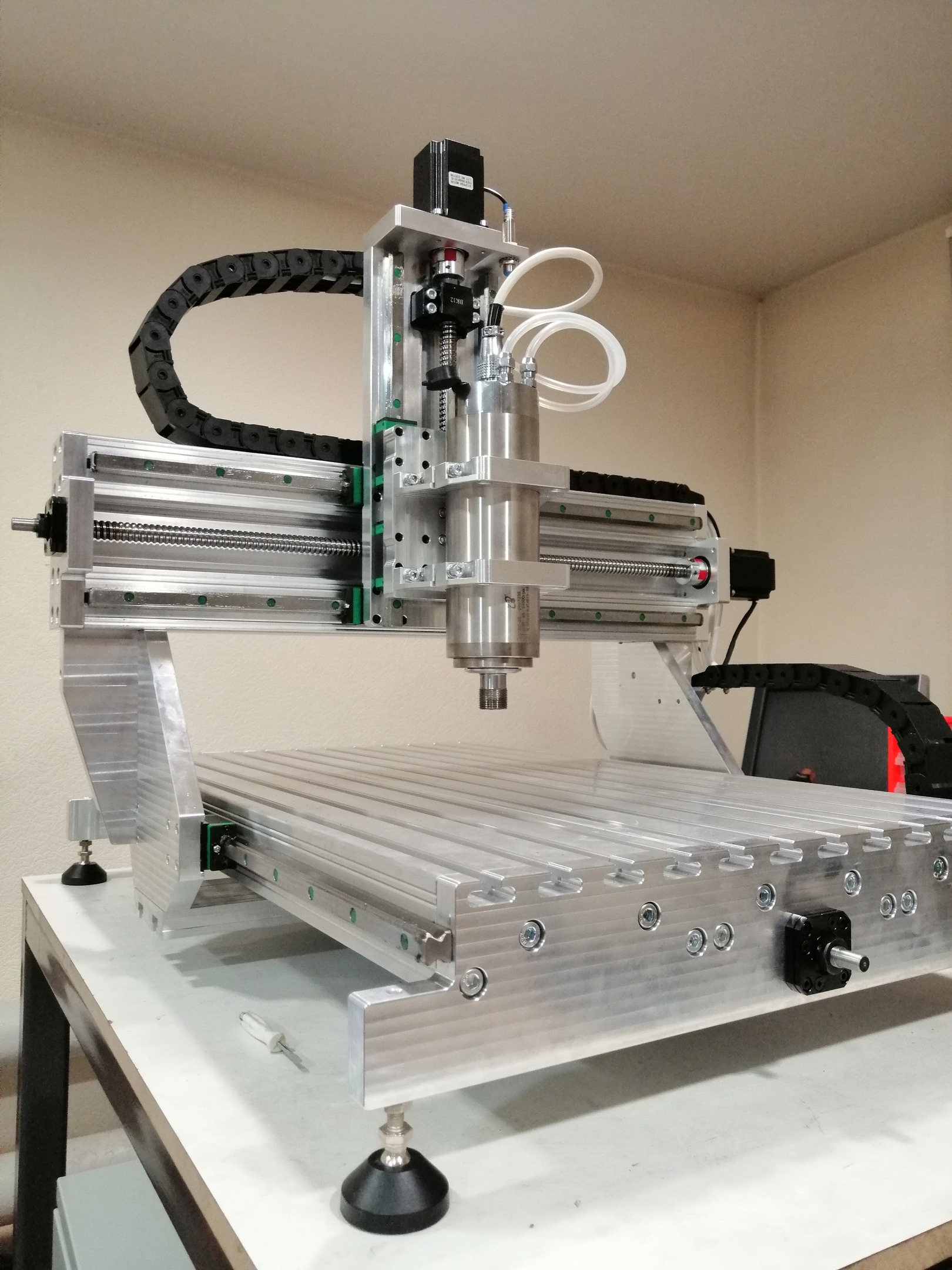 Я у себя планирую кабель канал по правому пазу пустить, даже 38 мм радиус должен проходить внизу, боковины дают достаточно высоты. Плюсом идет защита от стружки. Хотя мне с некомфортным перегибом проще, у меня шпиндель с воздушным охлаждением. До завершения мне достаточно далеко, станок собираю на коленке, в реальном понимании этого слова. Этот профиль дает такую возможность, все сопряжения можно сделать шуруповертом на коленке.