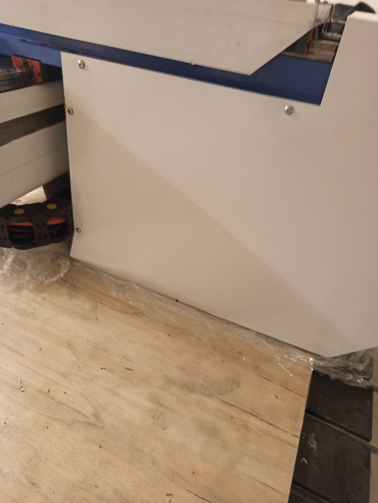 Оооо! Wattsan... 3 года назад, когда работал в Лазеркате, такая же покраска станков была, значит ничего не поменялось. Помню распечатал адрес отправки станка и прилепил скотчем к раме, потом скотч отодрался вместе с краской:-) Вообще серия М1 была хорошей в плане веса станка и надёжности, так что подкрасить и работать на нём можно, главное, геометрию проверить.