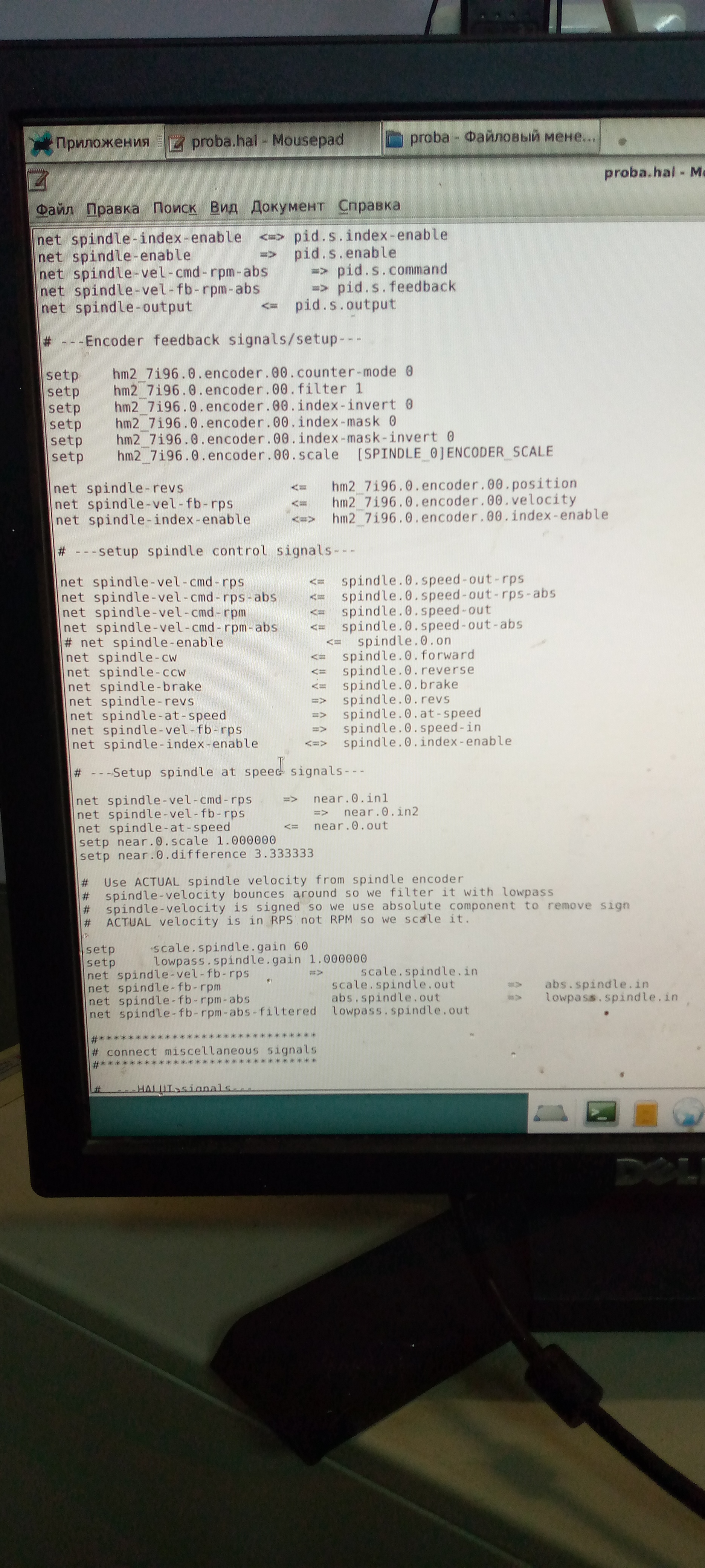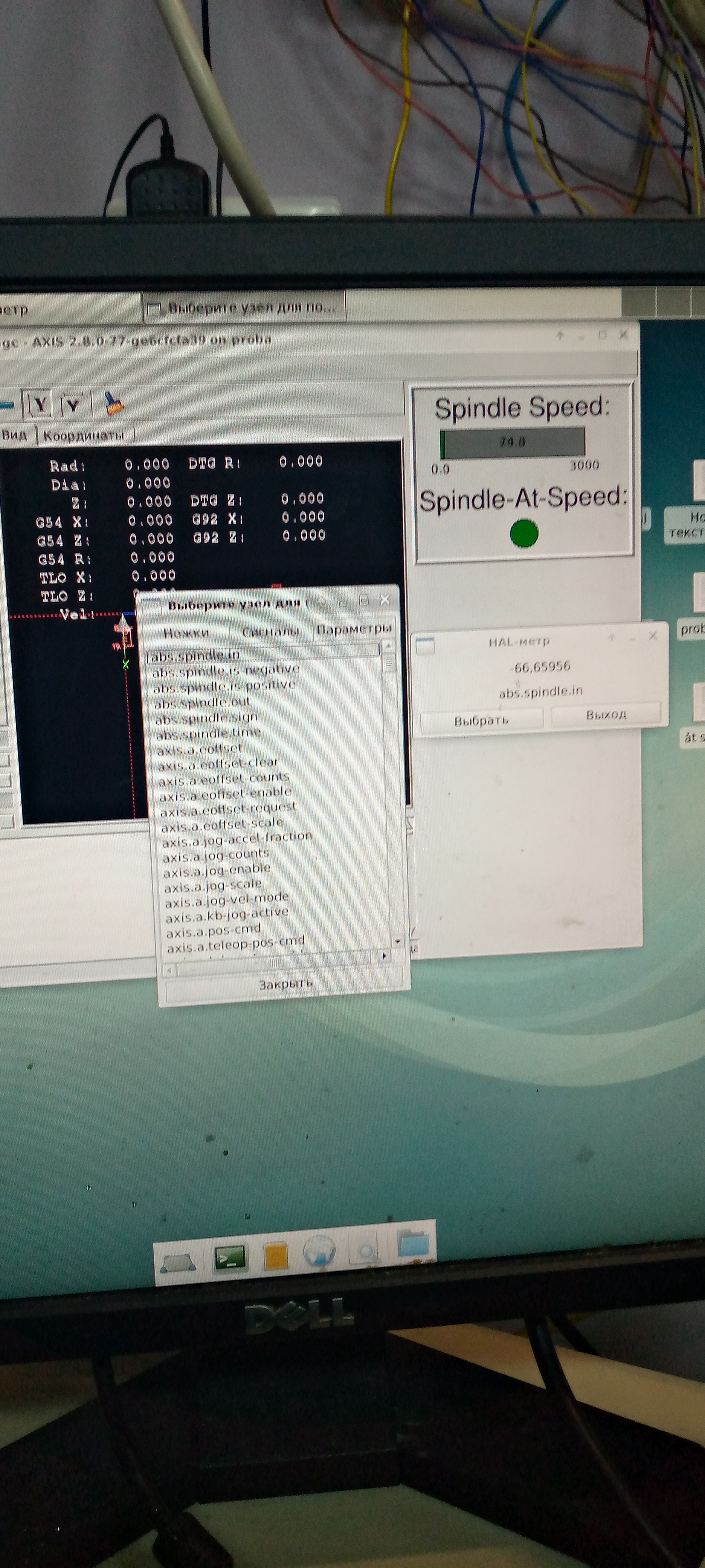 Товарищи. Может кто подскажет. Пытаюсь токарный запустить по g33.. станок не едет. Spindle at speed горит зелёным. Вернее вот какая штука. Повышает обороты ( через ШИМ идёт управление шпинделем) начинает помигивать красным в зависимости от оборотов. Видимо кинематика у меня ремня имеет некоторую раскачку. Не знаю как у других ....и вот в халметр вот этот параметр по 0.... Хотя остальные все параметры выдаются. Что это может означать ?