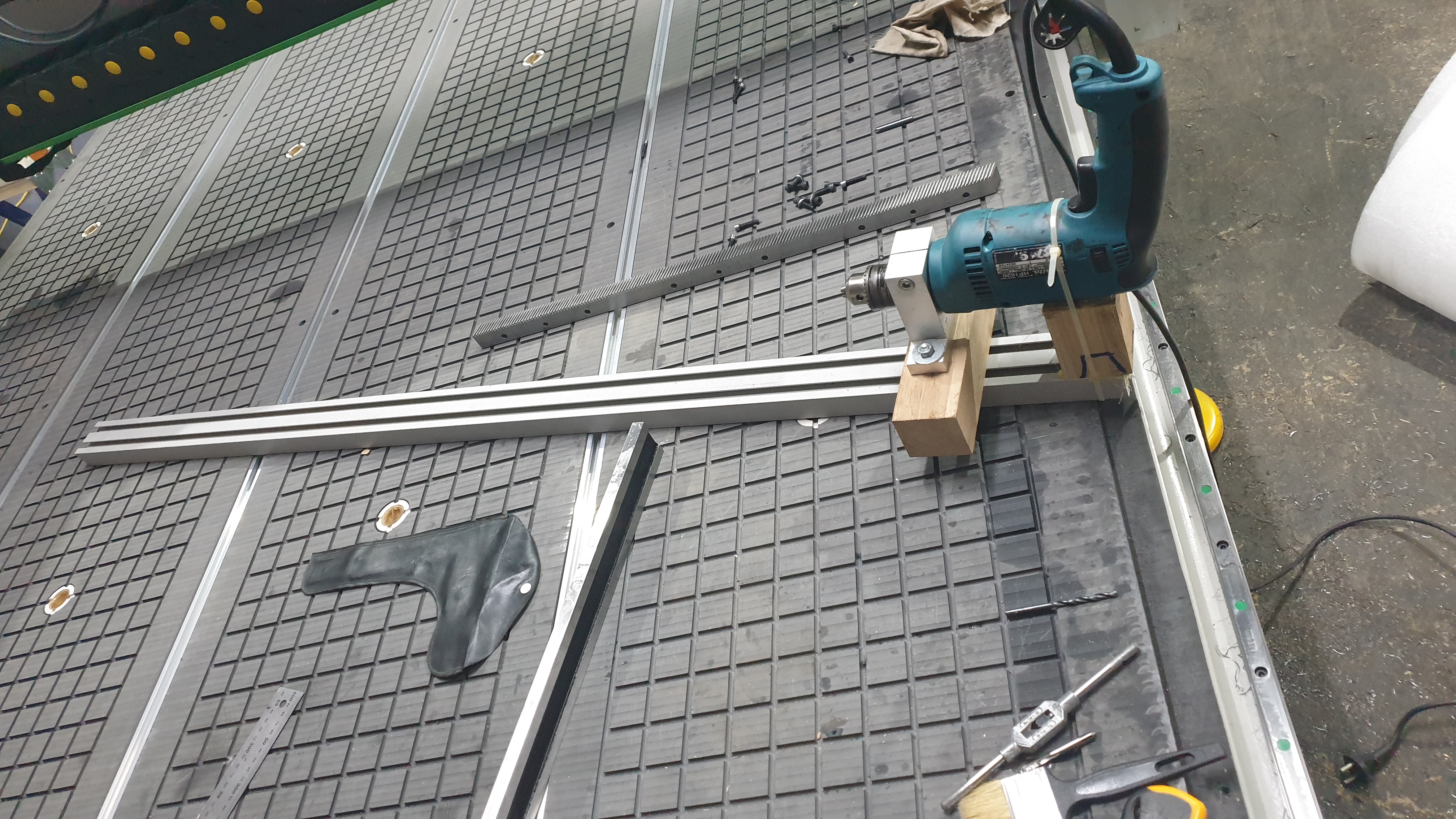 Есть идея сместить рейку и просверлить новые. Может кто знает удобный способ? Может кондуктор какой то или ось собрать под это дело?