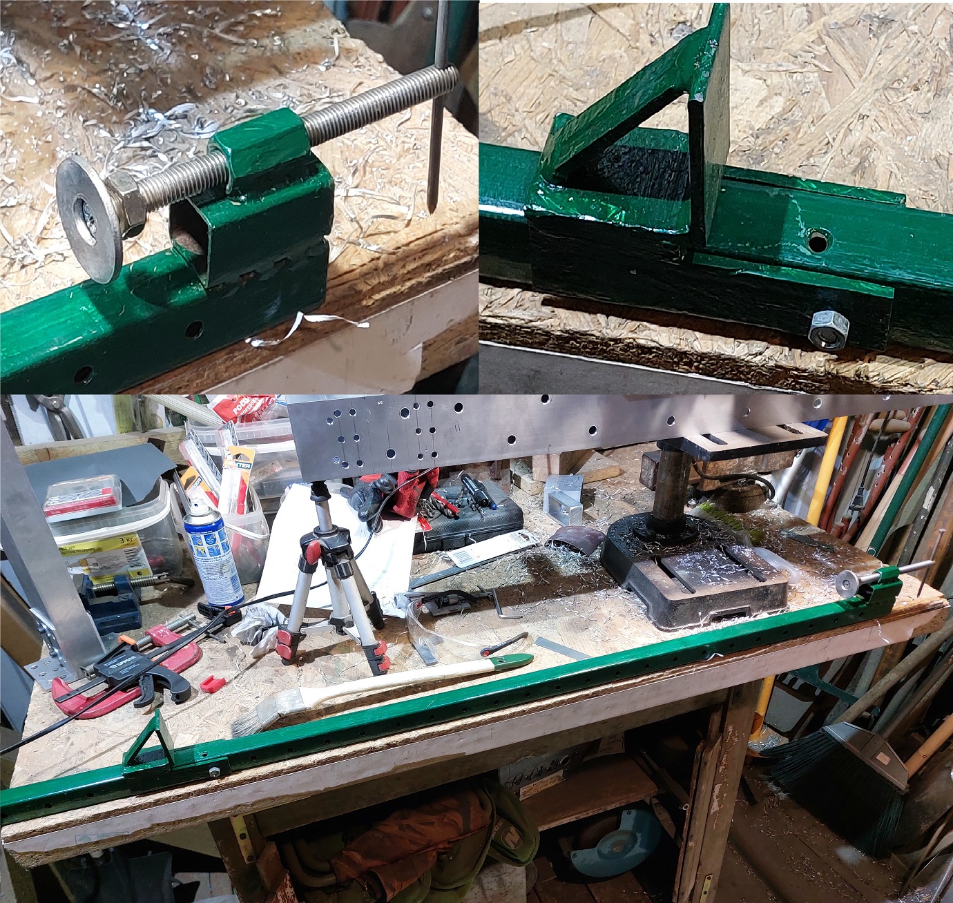 Струбцину для сжимания профиля сделал сам из обрезков металла что были дома, нашел на youtube как народ делает струбцины для стягивания деревянных массивов