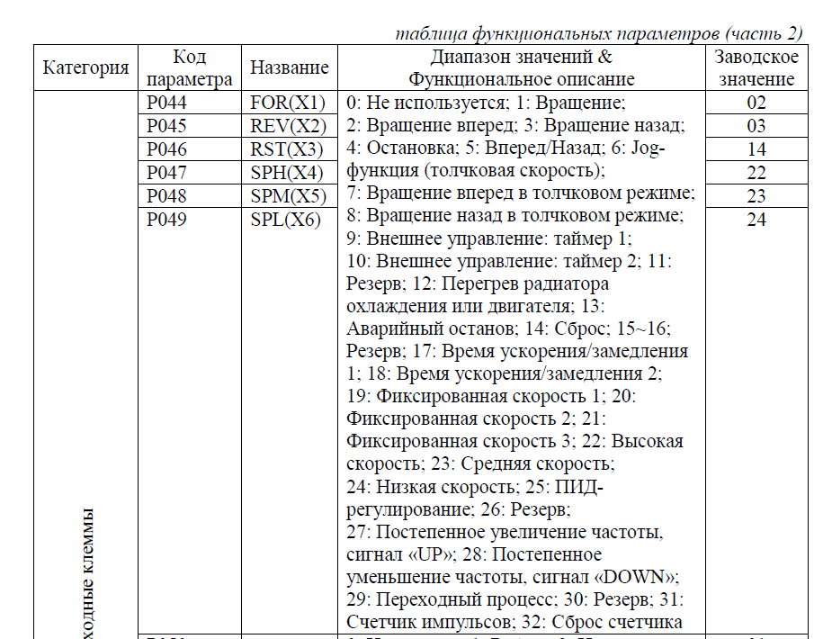 P046=04 – для остановки Выберите многофункциональные клеммы Х1, Х2 и Х3