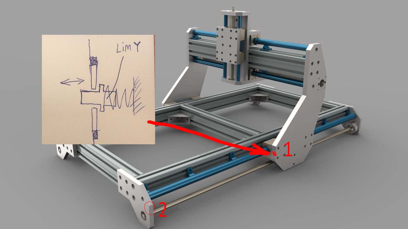 Принцип такой: в боковине портала устанавливаем подпружиненный штырёк, который просто без разрушений войдёт внутрь в случае, если электроника сойдёт с ума и портал поедет в ноль по Y.