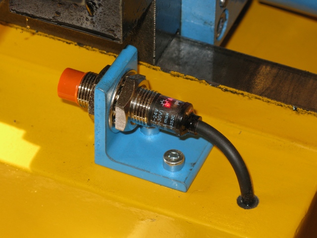 Сам концевик располагается в торце боковины в точке 1, он изолирован от станины. А место контакта в точке 2. Там нет никакой специальной площадки, просто металлический голый участок. Фото станка взял из интернета, свой я построил похожей конструкции.