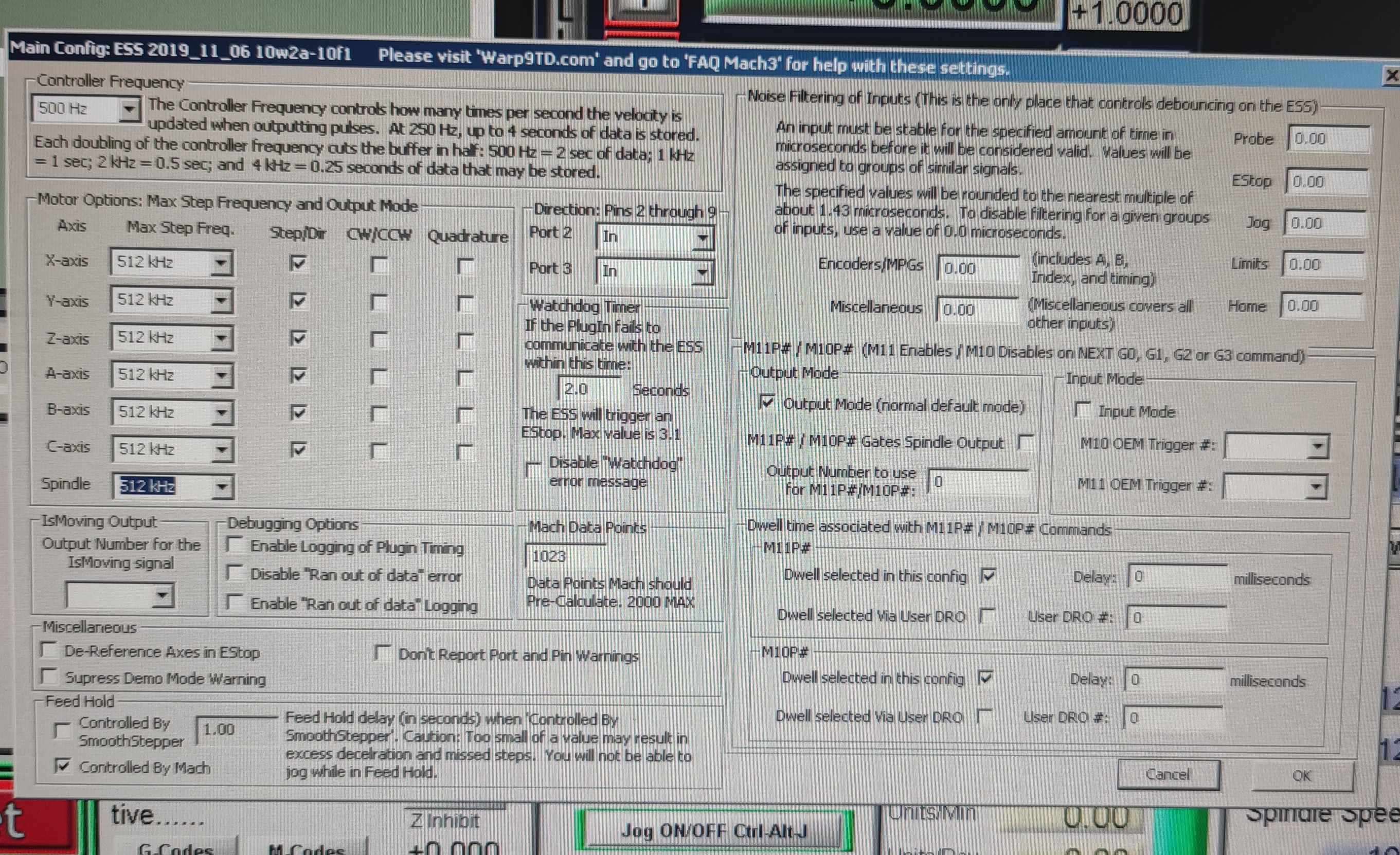 MACH3+ESS-106 не могу запустить шпиндель, покажите куда копать. Частотник acd200 0.75 до апгрейда уже был настроен на этот шпиндель, запускался с М3, рег. обороты с частотника.