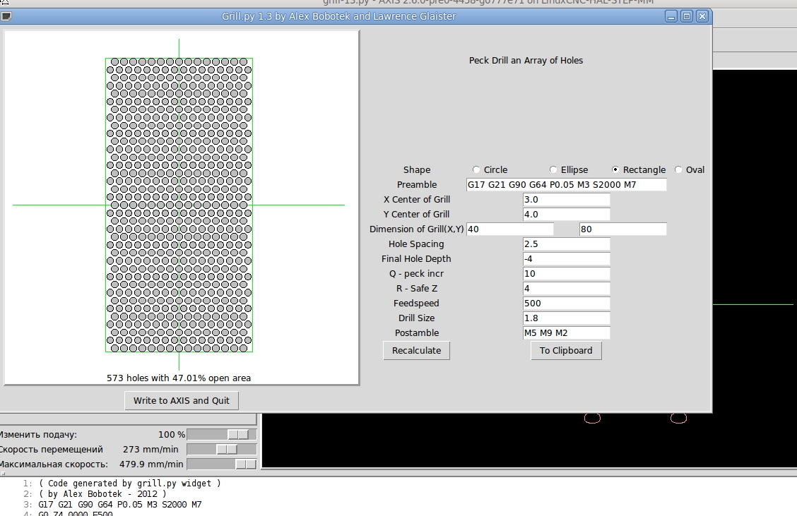 теперь из емс открываем наш файл grill-13.py , редактируем настройки, жмем 'Write to AXIS and Quit'.