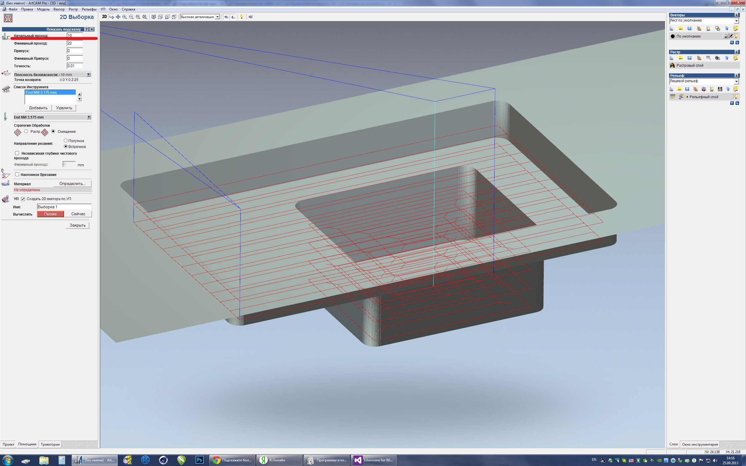 Тогда, перебрав кучу разных САМ систем я выяснил, что PowerMill прекрасно справляется с такой задачей, и ему не нужно ни векторов, ни вычислений в уме,