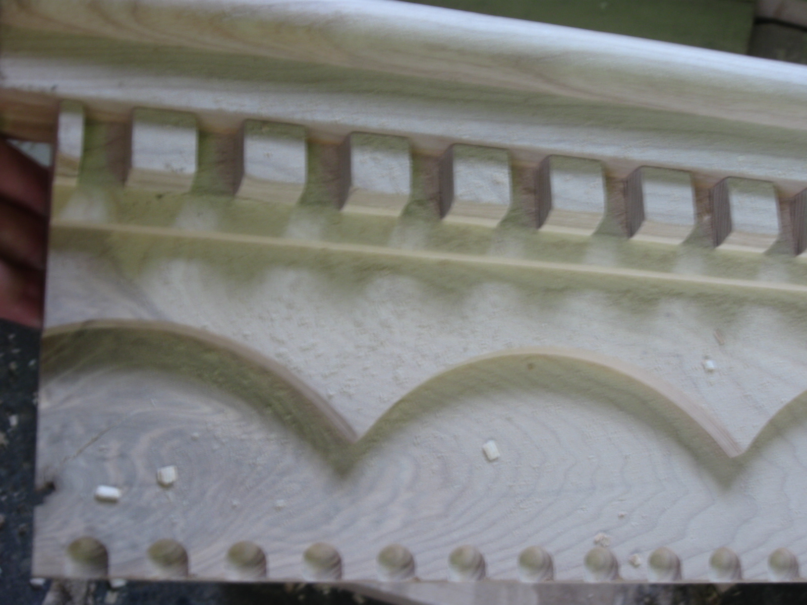 линейно да, будет целесообразней! но не всегда получится, я в первый раз столкнулась с пустыми проходами по воздуху, когда делала такую резьбу из массива, тут например сферической фрезой на всю глубину 26 не сделаешь сразу пазы- только либо в несколько проходов(что очень долго.....) - либо сначала выбрать нужную глубину на предыдущем верхнем слое,но эти "волны" выбираются дольше,чем просто по периметру ступенька.... позже конечно заготовку клеили так, чтобы выборки меньше было, но это не всегда помогало избежать пустых проходов :wik: