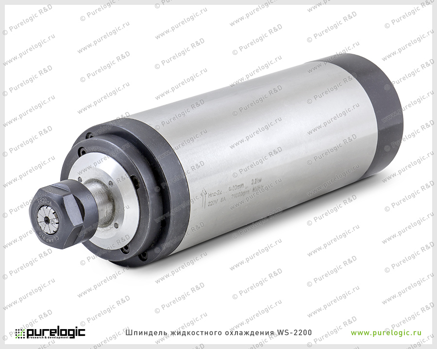 Трехфазный электрический шпиндель жидкостного охлаждения. 2200Вт/220В, 8000-24000об/мин, цанга ER20-A, диаметр под крепление 80мм. Вес 7кг.[/float]