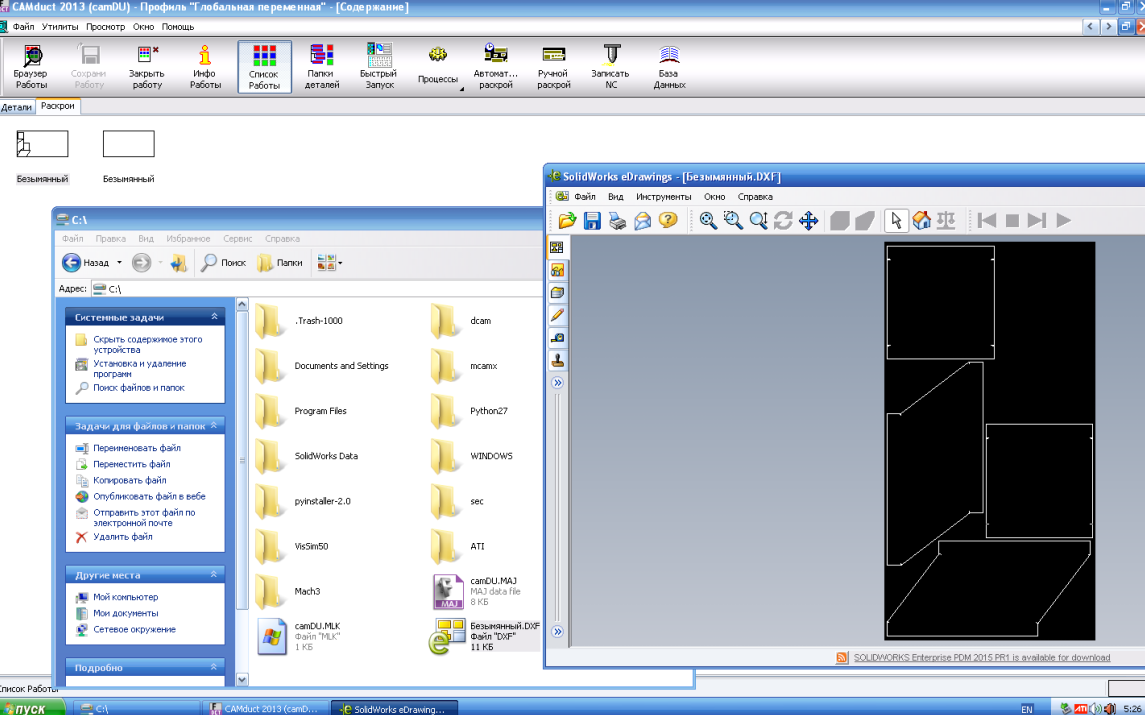 Раскрой деталей воздуховодов делается в программе Fabrication CamDuct 2013 из шаблонных вариантов. Изменяется размер детали, делается допуск на шов (замок), наносятся засечки для сгибания детали - это все в программе устанавливается дополнительно. На просмотре эти все изменения есть, а при экспорте из этой программы в dxf - нет, есть только голая деталь без допусков на шов и засечек. Предположительно есть в программе настройка экспорта, но где? Там где я смотрел и искал - ничего не помогло. Там много настроек, а что за что отвечает... Только и надо из этой проги вынуть dxf полный.