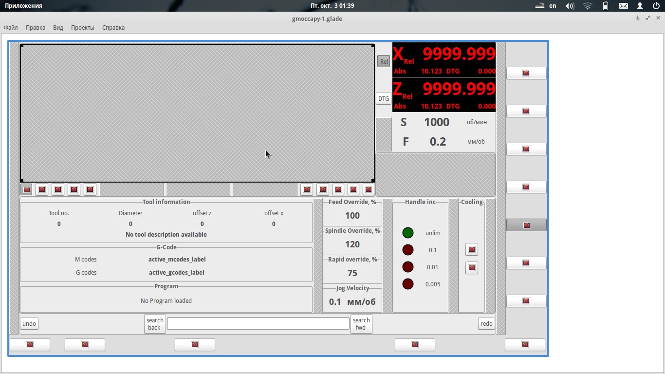 Ты наверняка вкурсе, но на всякий случай напомню, что для редактирования gmoccapy.glade редактор надо запускать из терминала предварительно настроив среду исполнения вот так: