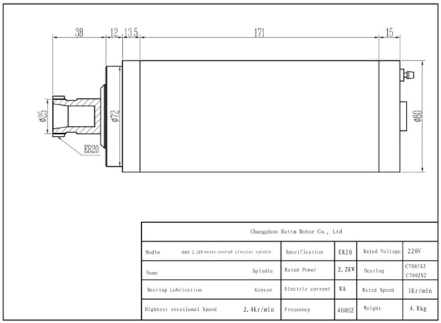 2.2KW WATER-COOLED SPINDLE MOTOR ENGRAVING MILLING GRIND 80x213mm ER20