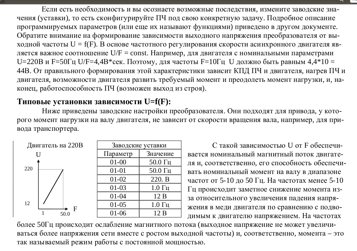 Собственно вопрос: Все я правильно делаю, и что это за спец.эффекты в шпинделе. И зачем все-таки нужна настройка промеж. и мин. частоты если U/F = const