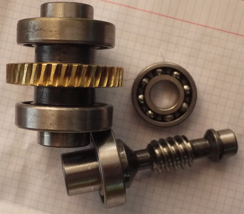 Далее пока разбирать боюсь, думаю всё на валу заприсовано, если выписать пусть такой же редуктор, пусть более качественный придётся учится выприсовываь, и впрессовывать подшипники на вал...