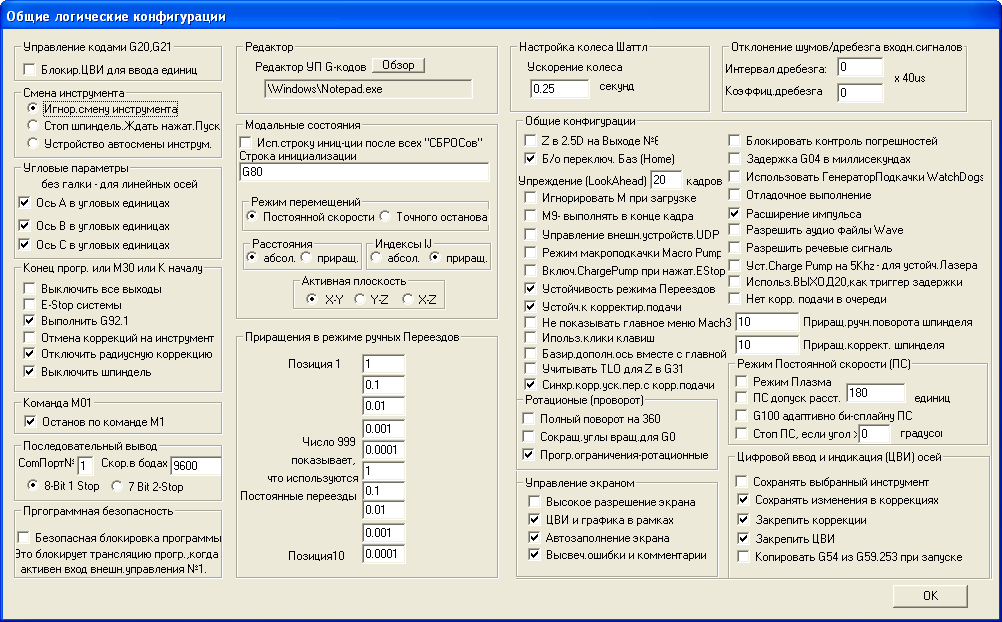 Имею CNC Router 3020 MIB Instruments (Китай) с контроллером DY 5300 (управление от РС и ручное с энкодера). Включил после долгого перерыва и вот сюрприз! В Mach3 на любой G-код шпиндель перемещается в одном направлении в осях x, y от правого нижнего угла рабочего стола в левый верхний угол. При этом движется прямолинейно, если в программе задана прямая, или по синусоиде, если должна быть окружность. С ручного пульта отрабатывает по всем осям правильно. В электронике специалист практически нулевой. В чем может быть дело? Куда копать? Подскажите, пожалуйста.