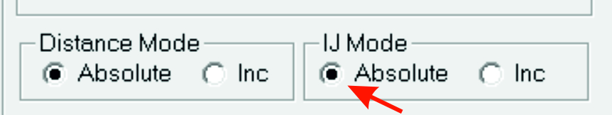 G90.1 - absolute distance mode for I, J & K offsets. When G90.1 is in effect I and J both must be specified with G2/3 for the XY plane or J and K for the XZ plane or it is an error.