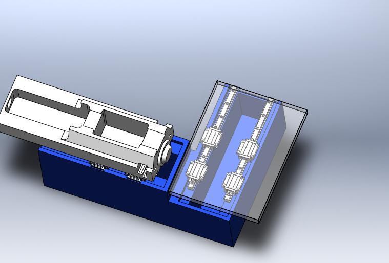 Немного поработал над картинками. Пока что предварительно. Как окончательно отрисую и прикину оставшиеся размеры, можно будет заказать проставки с чугуна под направляющие и потихоньку приступать к фрезеровке-сборке. Пока что такой вот видок, по кинематике ничего сложного
