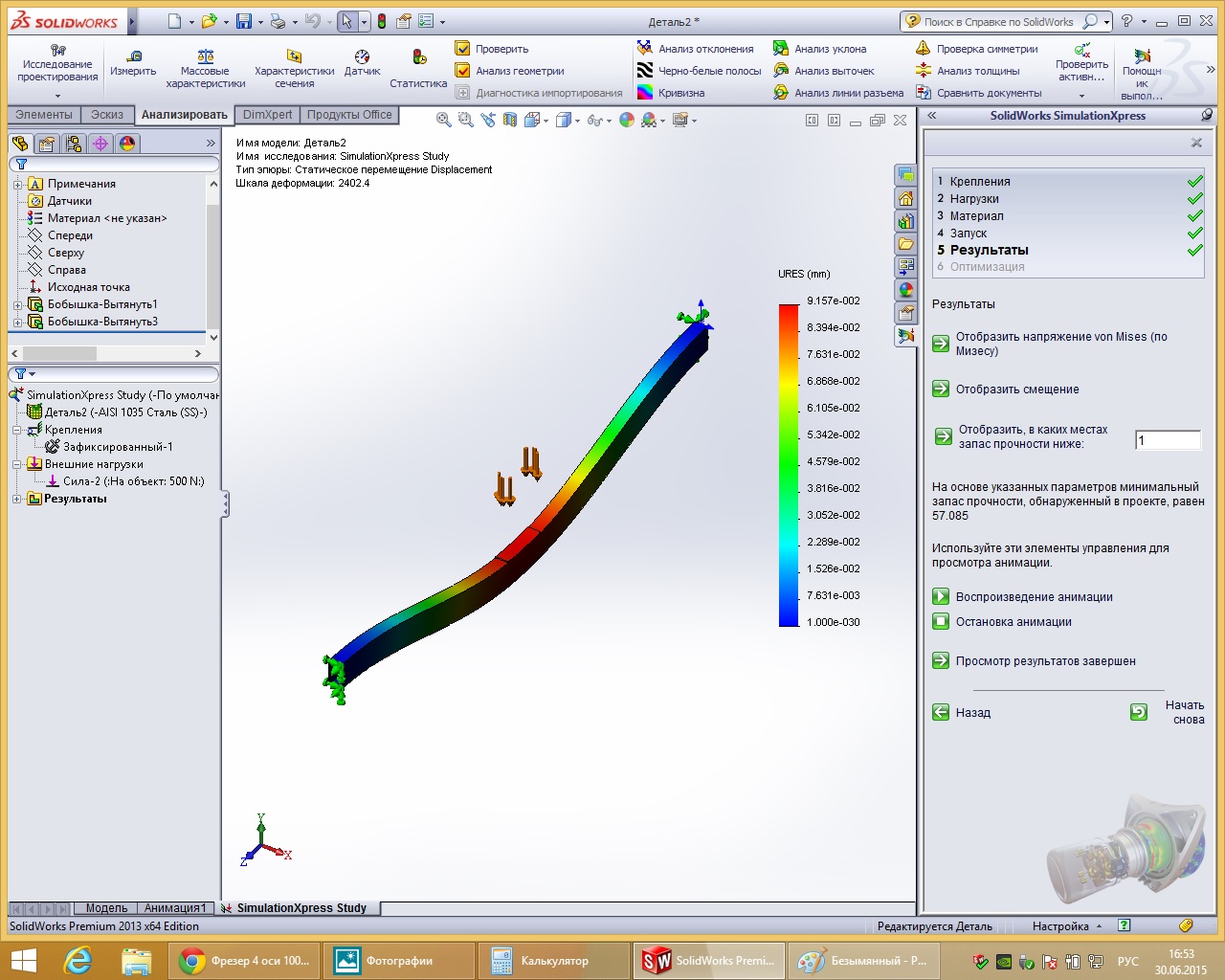 в последнем расчете, брал с толщиной 4мм, но там было 50n=5кг, сейчас переделал на 500N = 50кг!!!