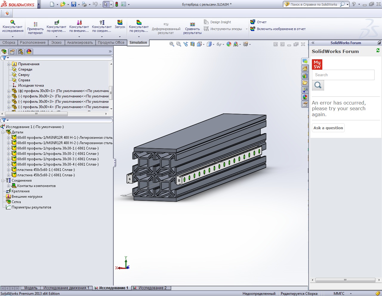 alekspr0k писал(а): сделал в SolidWorks балку 10х5см 0.2мм 2200см и на нее нагрузку в 50кг