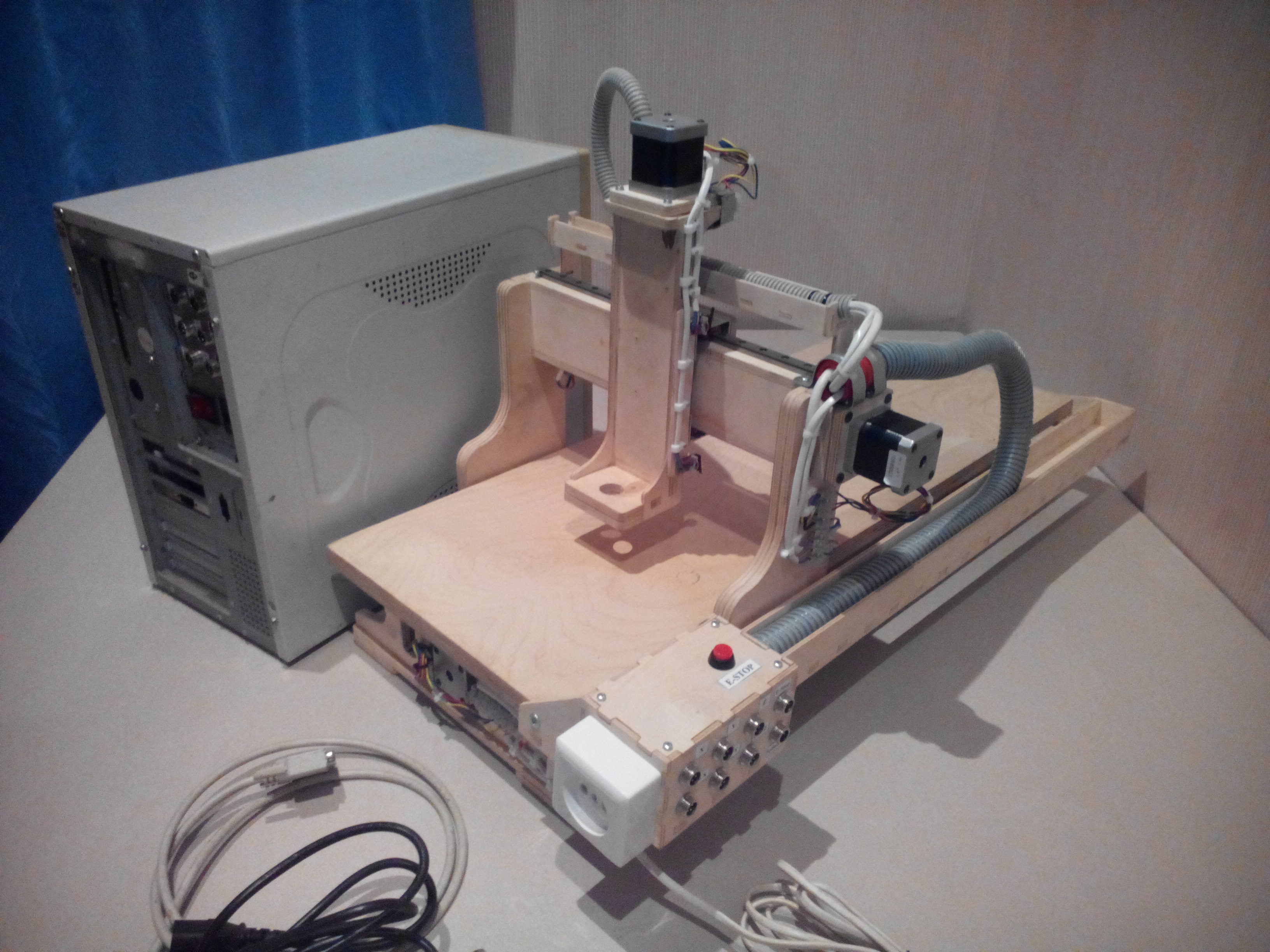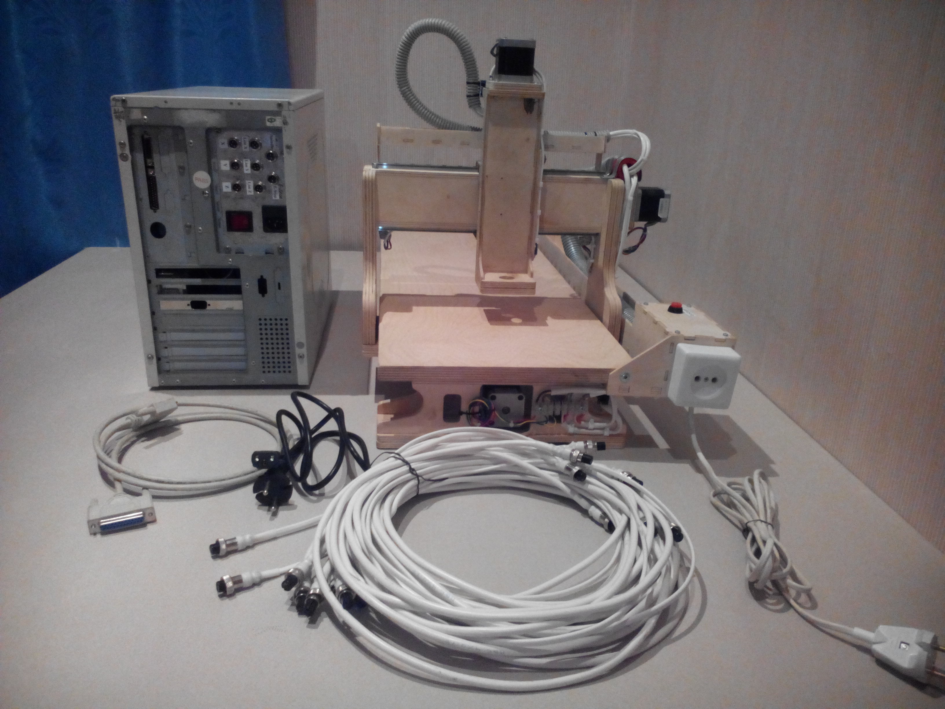 Продам хоббийный 3D ЧПУ станок из фанеры по чертежам CNC-GRAF (с небольшими изменениями). Простой, надежный аппарат. Рабочее поле 200х490х60 мм, точность 0.2 мм. Без шпинделя (делался под Proxon, но влезает любой хоббийный гравер), с блоком управления на базе 3 Axis TB6560, подключение к компьютеру через LPT порт, управляющая программа Mach3, шаговые движки Nema17, линейные 9 мм направляющие хивин по всем 3-м осям. Передача: винт (строительная шпилька 10 и 8 мм в целях повышения и удешевления ремонтопригодности) - гайка (капролон). Отправка любой транспортной компанией из Иркутска (в стоимость станка не входит). Хочу получить за него 50 тыс. руб. Торг. Станок использовался для личного обучения (обучение закончилось, надобность в нем отпала, может кому пригодится)