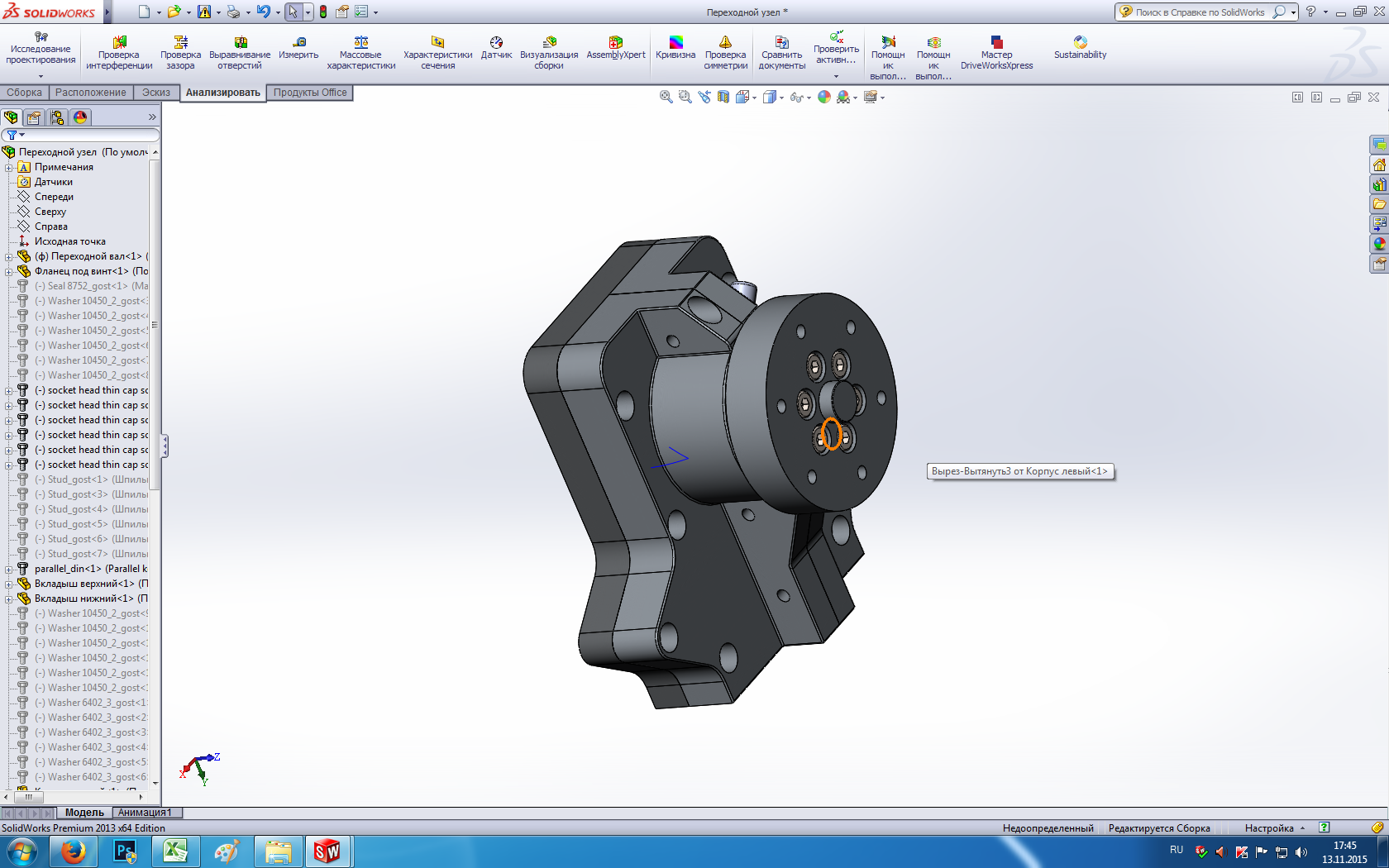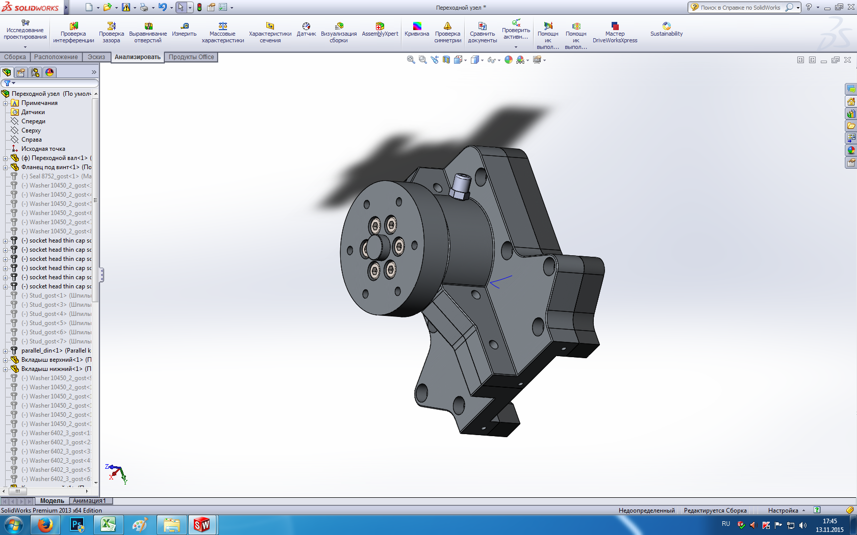 Узел состоит из стального вала, подшипника (упорный вкладыш коленвала), алюминиевого корпуса (две половинки) и фланца.