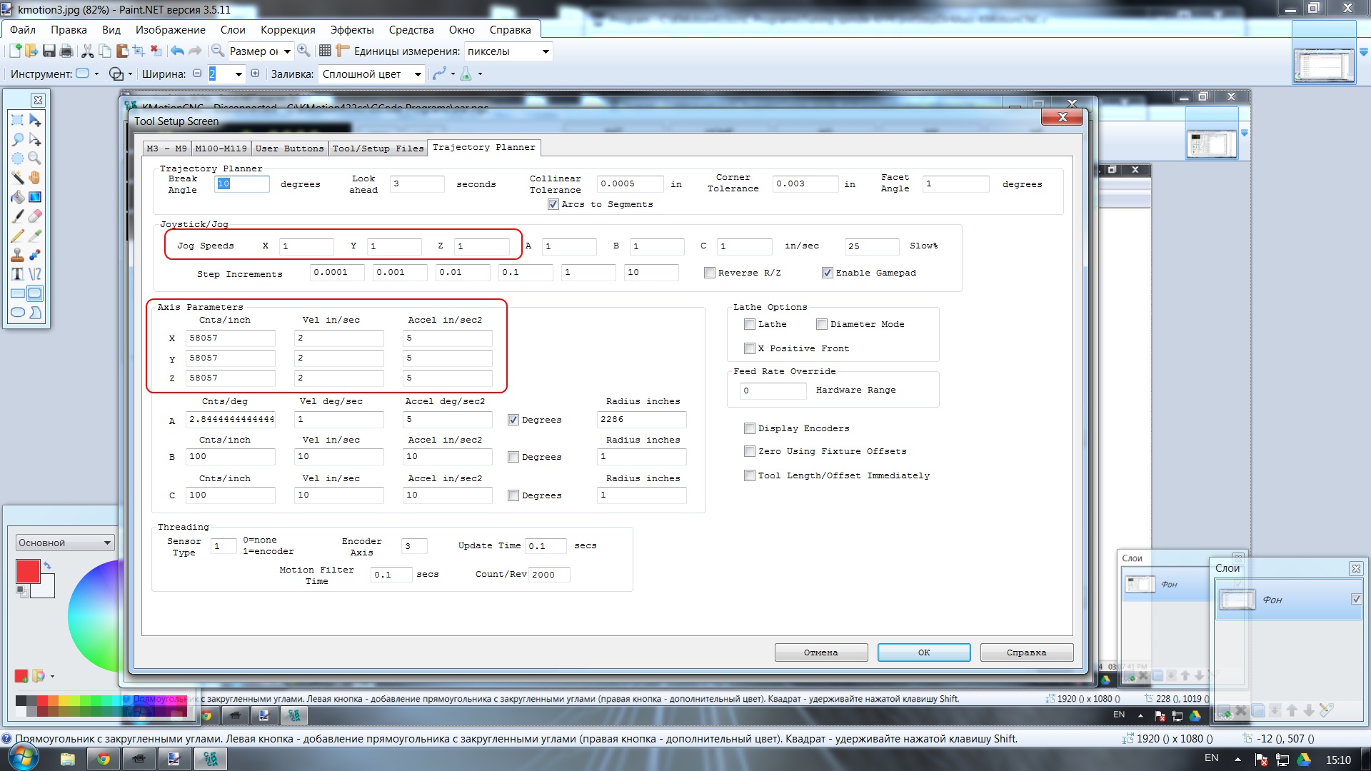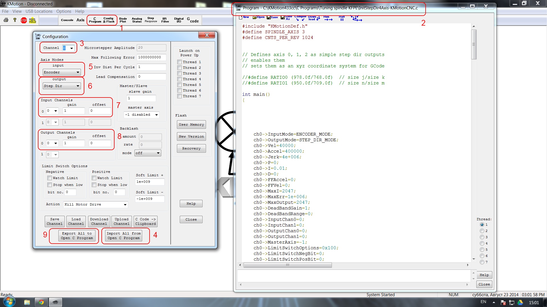 Нам нужны две программы: Kmotion для настройки контроллера и KmotionCNC для управления станком.