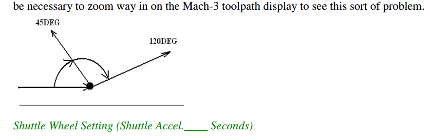 В настройках Mach3 указывается именно изменение угла вектора движения.bash_hd писал(а):а Идеально коллинеарные отрезки -это не 0, а 180 градусов. всё что меньше 90, например как выше говорилось 28 градусов - это совсем острые углы, случай крайне редкий в траекториях.