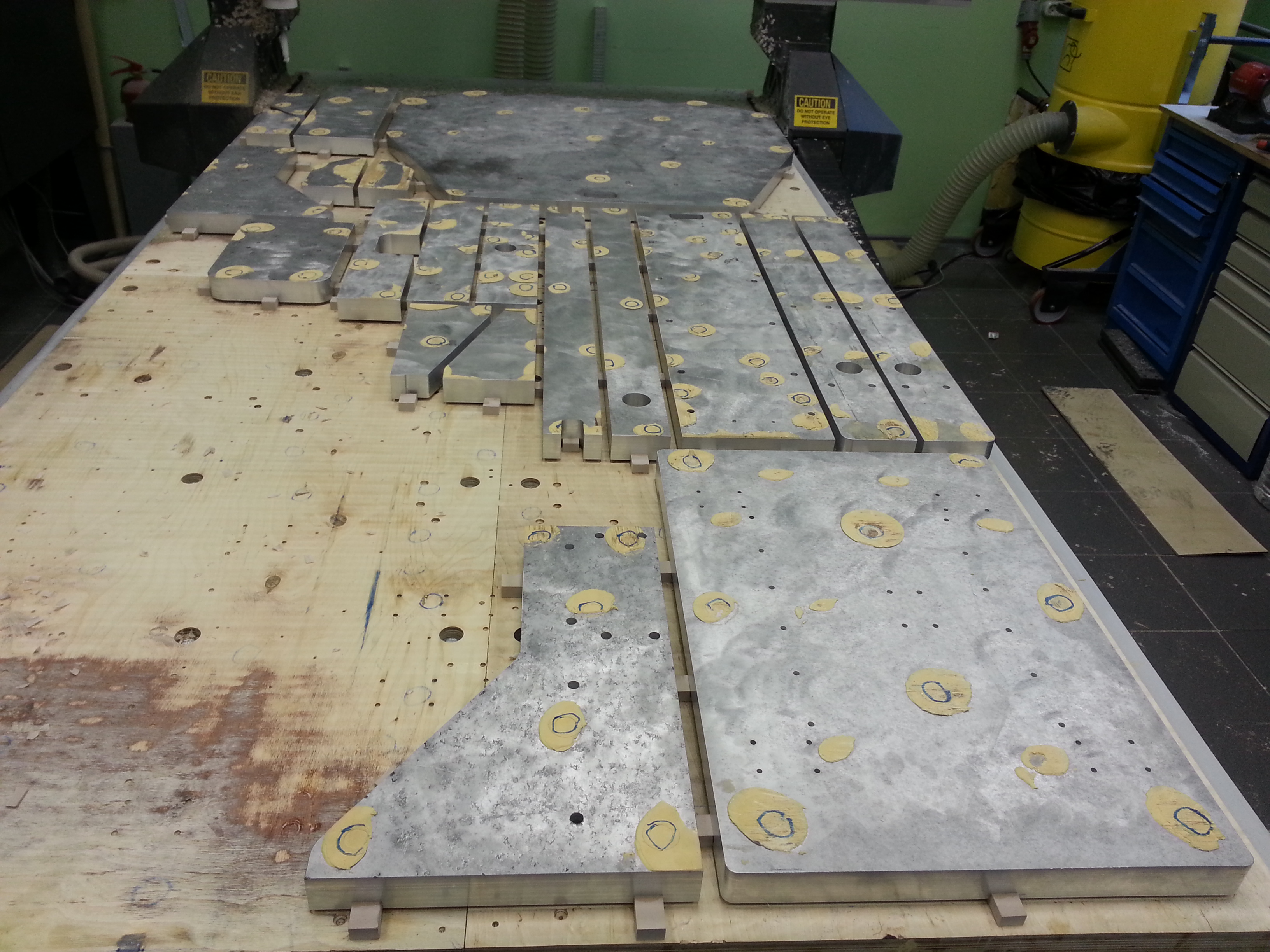 все торцы перпендикулярны плоскости все детали вырезаны просто по контуру сначала с припуском 0.2мм а потом в чистую. точность разброс в 3 сотки примерно по контуру поверхность даже чтото отражает. разброс по точности потому что мультикам на рейках наверно. но размеры которые должны быть одинаковые получились одинаковые поскольку детали лежали на станке рядом. думаю это максимум что можно выжать из мультикама по качеству и точности. еще у него проблема то что шпиндель при работе нагревается и растет в длинну поетому все чистовые точные проходы там где важна точность по оси Z делались хорошо прогретым на других операциях шпинделем и на техже оборотах на которых он уже работал чтоб свести на минимум изменение температуры шпинделя. по этойже причине решил ставить на свой станок водяной шпиндель он холодный всегда и размер не уходит. в любом случае при сборке станка точность всего будет максимально на сколько смогу контролироватся поверочнаяя плита и линейки есть все будет максимально промерено и по возможности поправлено доступными средствами.