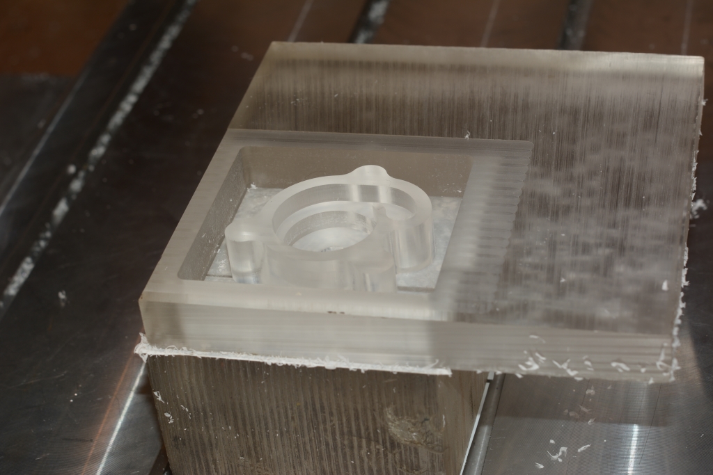 Начал фрезеровать первую реальную детальку. Дело было вечером закончить не успел.