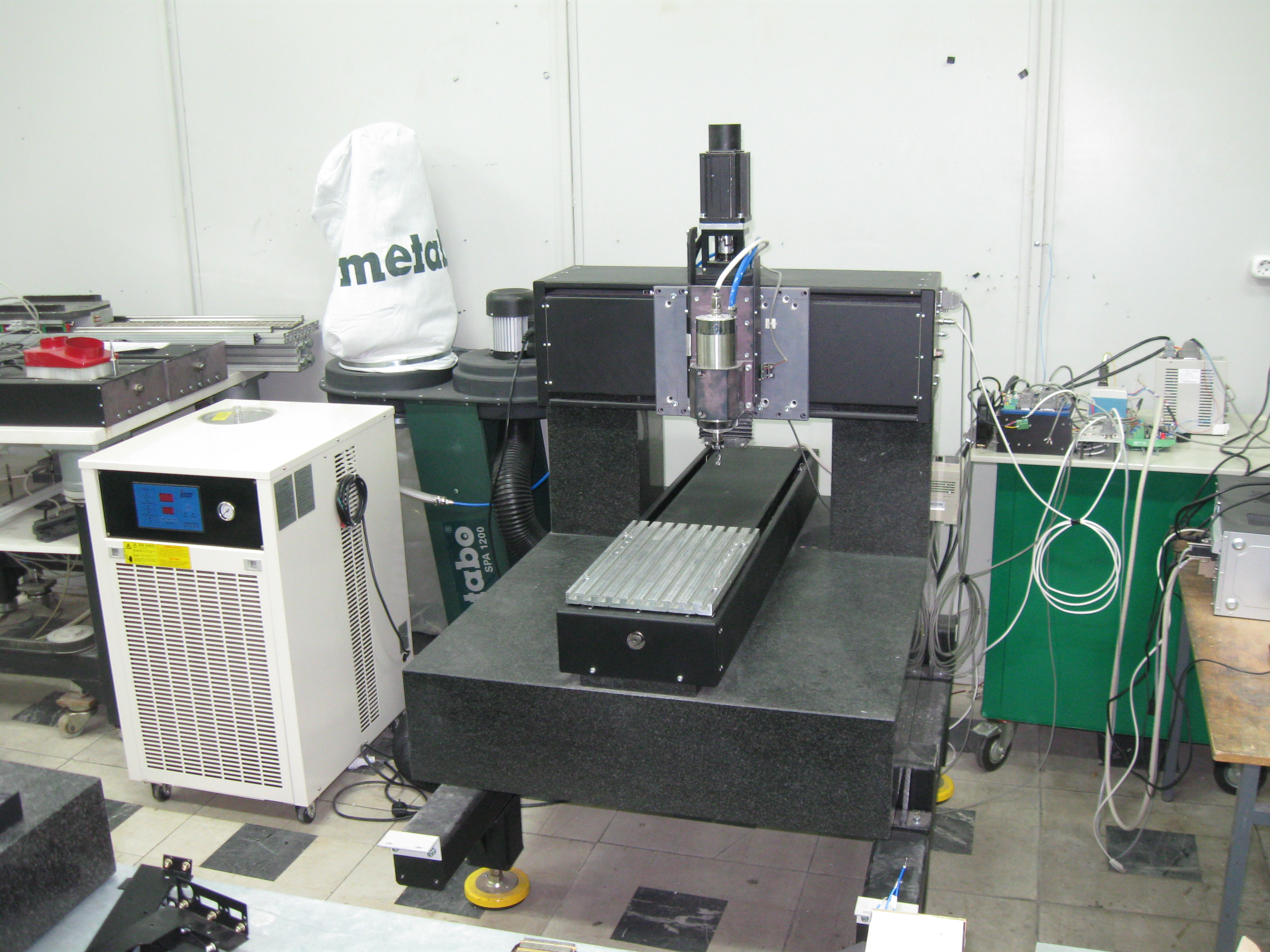 Сделал вот такой фрезерный станок для высокоскоростной обработки. Координаты Х, У - на линейных двигателях собственной разработки. Основание - чёрный гранит.
