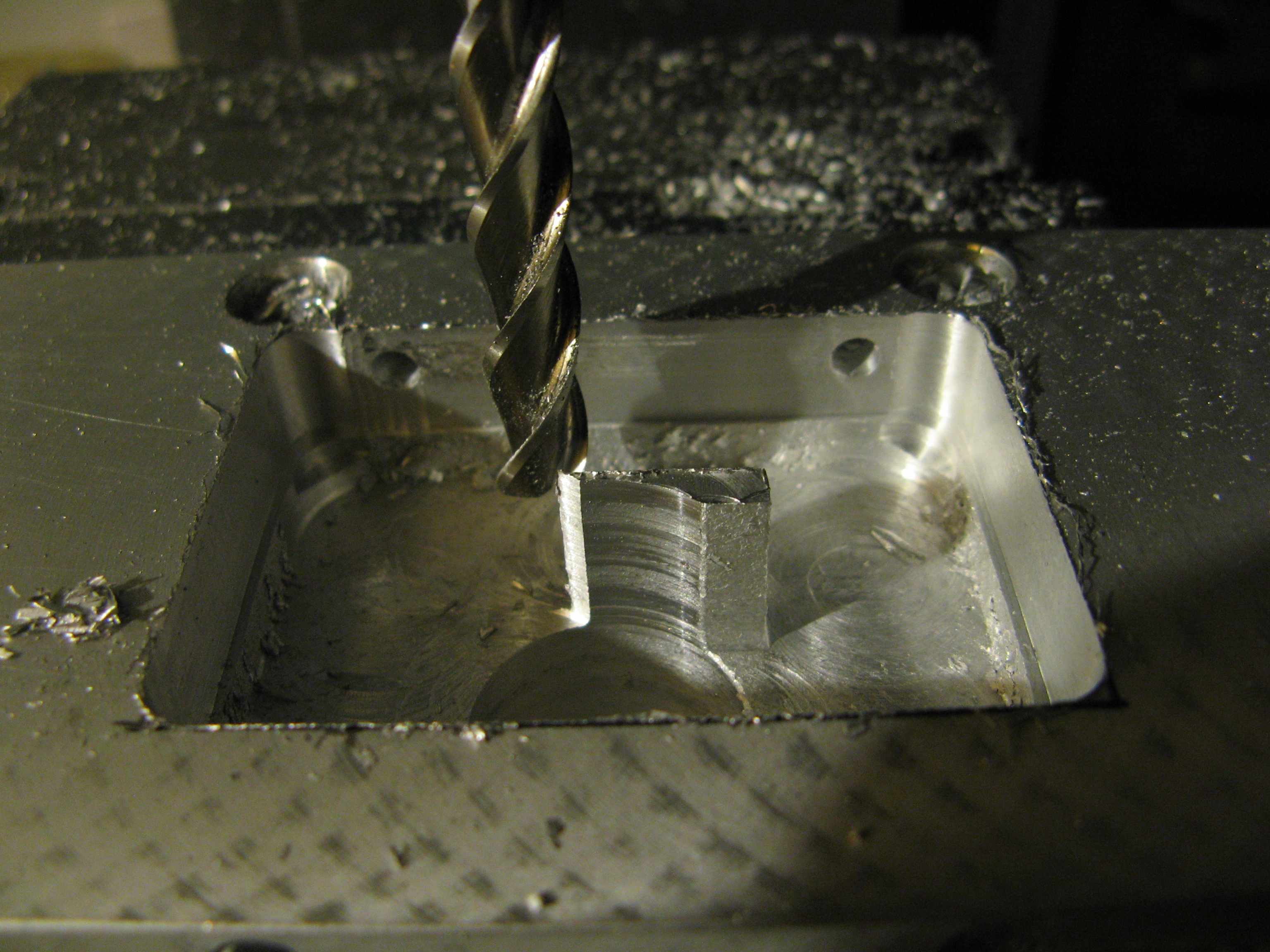 пилим дальше понемногу планирующей головкой прошел дно колодца под крепление опоры винта - по другому было некрасиво
