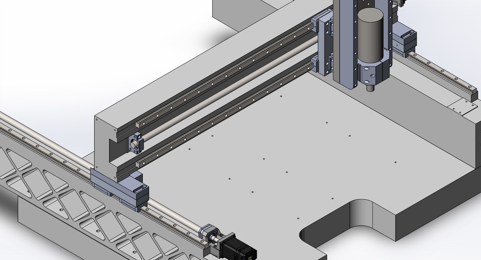 при ускорениях и торможения вдоль оси Y и плюс вес оси Z со шпинделем возникает сила которая будет пытаться положить боковины. Исходя из этого мне бы очень захотелось поставить два ряда болтов причем раздвинуть их на максимально возможное расстояние.