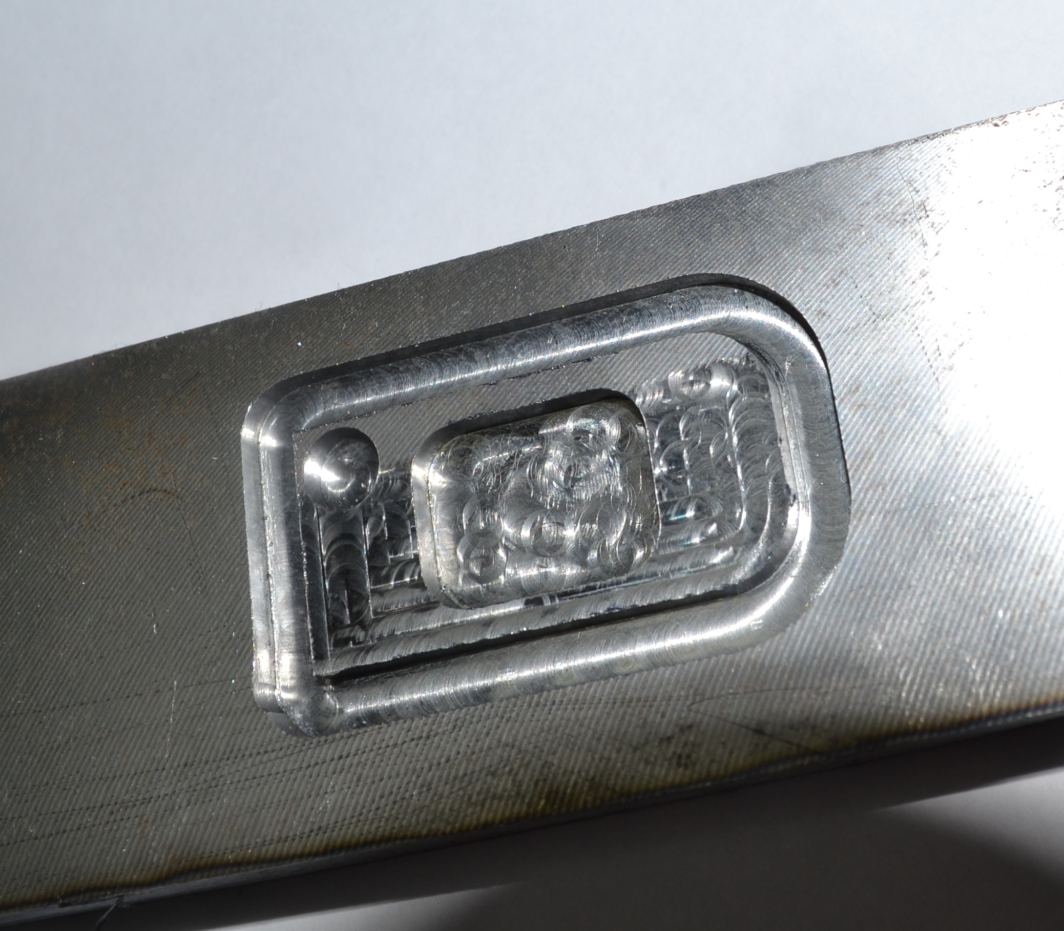 Ну думаю, если два дня не могу сам разобраться в чем дело и как победить, дай немного по экспериментирую, отвлекусь немного. Замахнулся я на гравировку аж по стали, чем остался доволен, не ожидал. Звук вполне терпимым оказался, немного жестковато врезание на последней операции, но яж впервые с таким. Думаю когда стол ляжет общая жесткость будет еще лучше. Много рисок на детальке из-за недостаточного вымывания стружки, они шелестят напоминая звук шелеста песка в подшипниках. Если, например, 0,1 одним проходом снять, то поверхность лучше чем шлифованная(по крайней мере лучше чем на тех детальках, которые мне делали шлифовкой). Ну пока в таком виде проект, я спать.