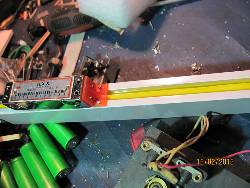 Этот вариант хорош тем что меньше вероятности залёта стружки внутрь линейки. Однако подвижная голова будет таскать за собой шнур коммутации (очень кстати там качественная гофра - я такую у нас в продаже не видел) и возможно когда нибудь провод внутри перетрется. В этом варианте большая вероятность повредить линейку при операциях монтажа заготовок. Ну и все концевики не пережили переезда - карболит очень хрупок.