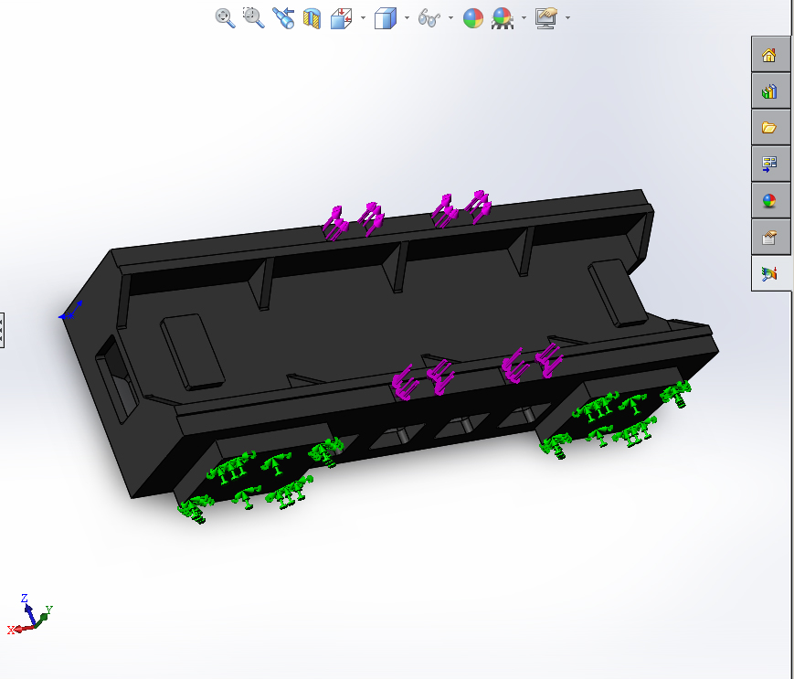 Приложил силу в 1000N в сторону портала и 1000N от портала на площади примерно равной площади контакта кареток с рельсами. зафиксировал портал жестко в местах крепления стоек портала. (вес портала с сотами на 2 кг больше)