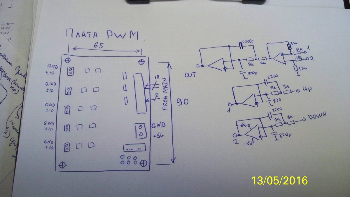 Управление аналог, и на данный момент встрял вот с чем, при подключении одного мотора - все нормально, запустил все 4, контроллер PWM постаянно выдает от -0.5 до -1 вольта, все весело крутится, но я так не хочу
