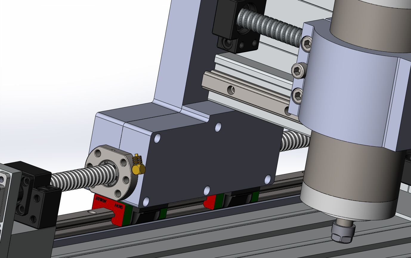 * Направляющие: Hiwin 15 мм, станина - блоки HGW15CCZAH, портал и ось Z - HGH15CAZAH.